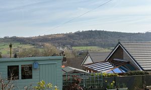 Beautiful light filled room with uPVC double glazed windows and french doors leading out to garden with stunning elevated hillside views and private aspects across garden, TV point, panel radiator, tiled flooring, recessed spotlighting.