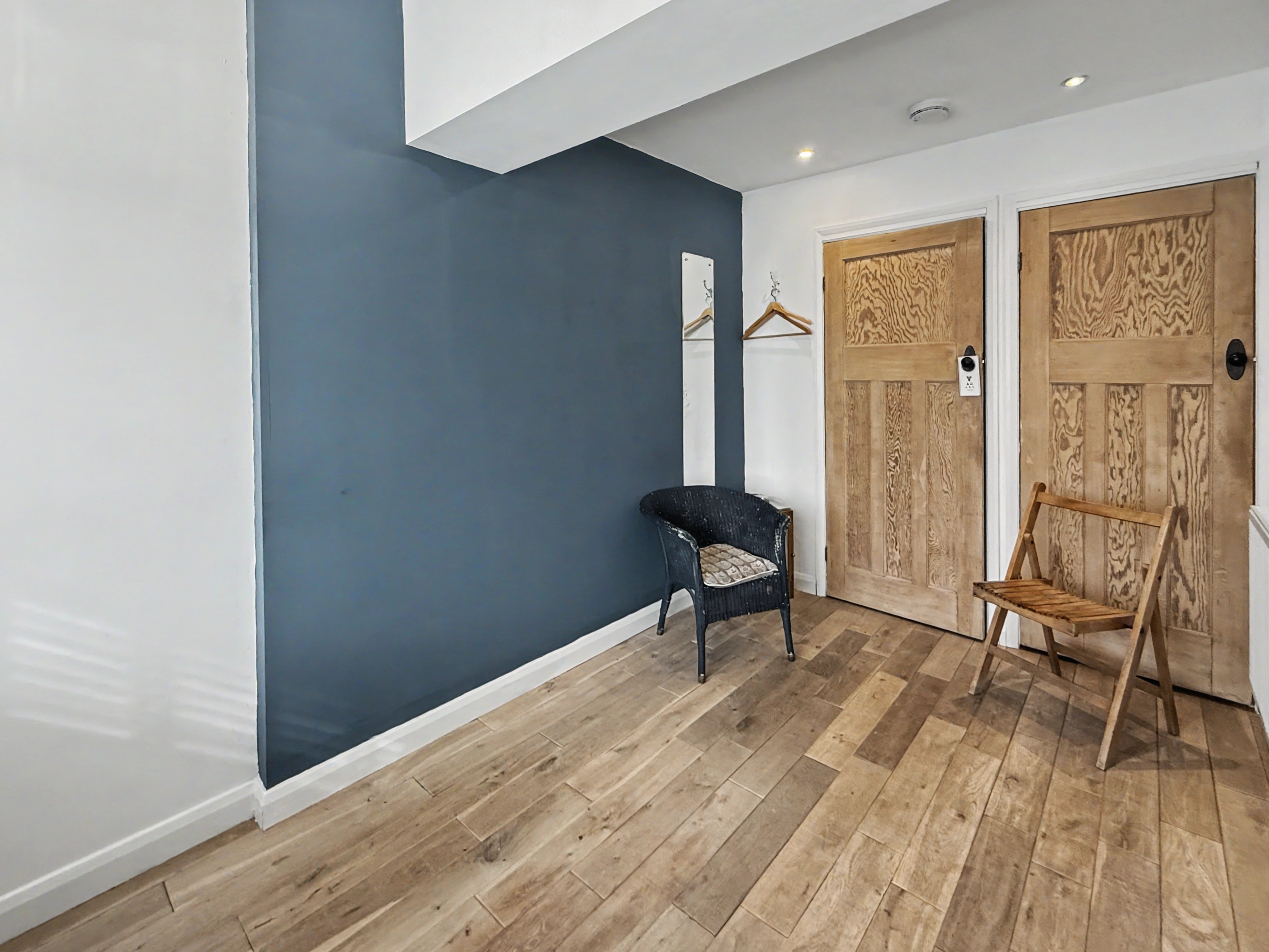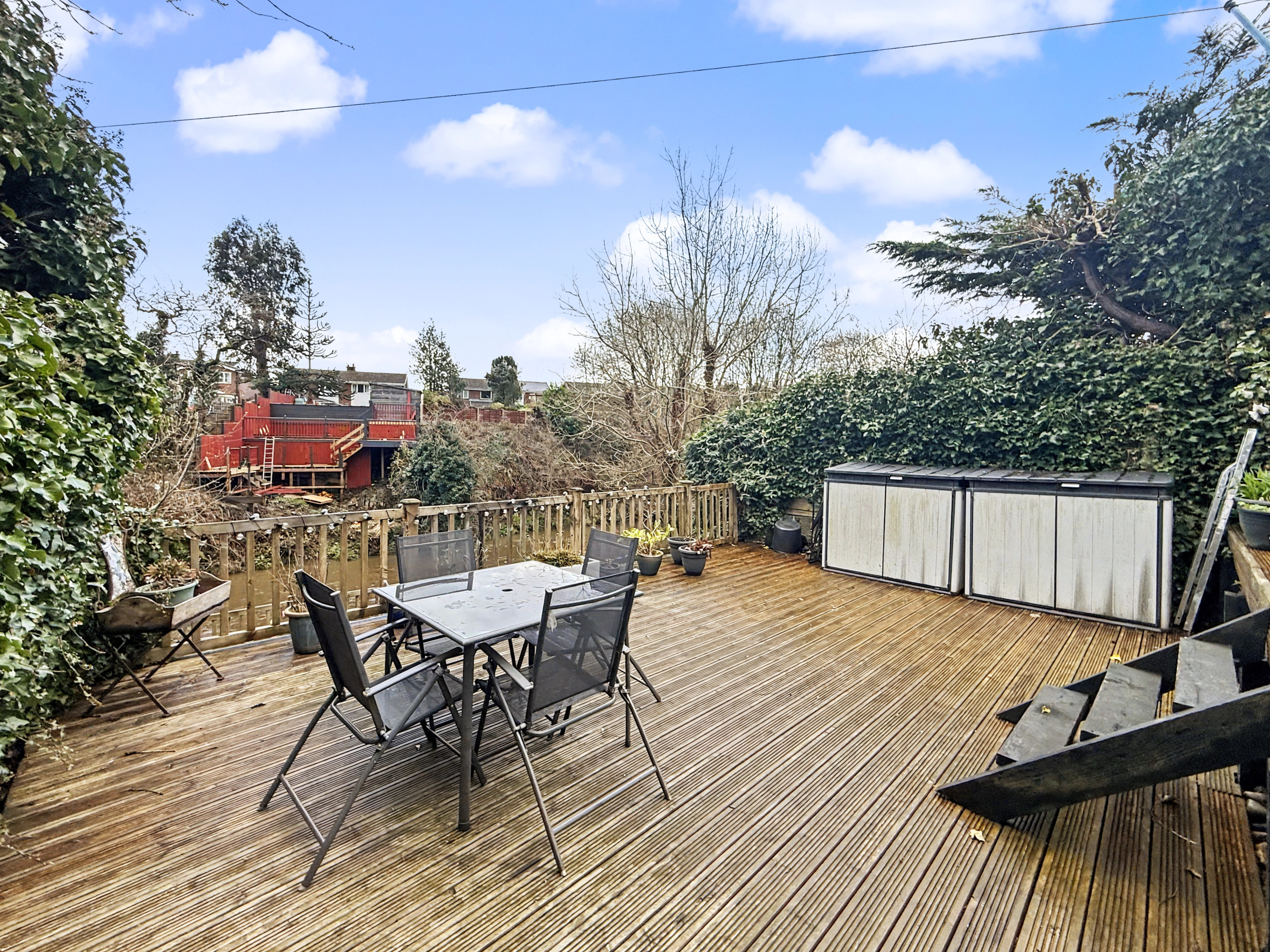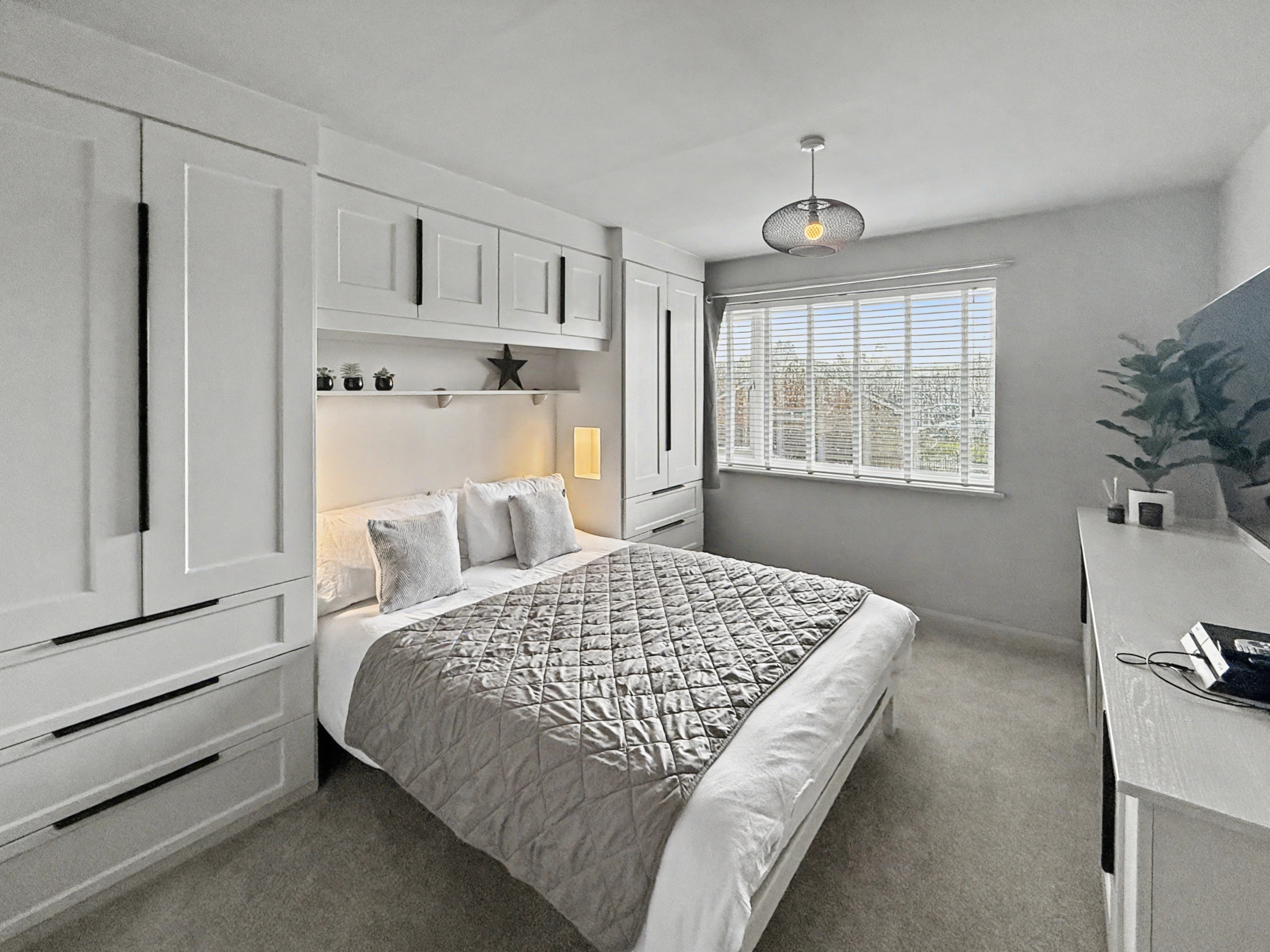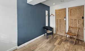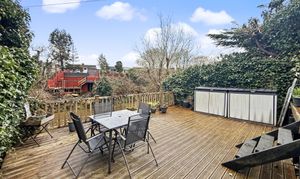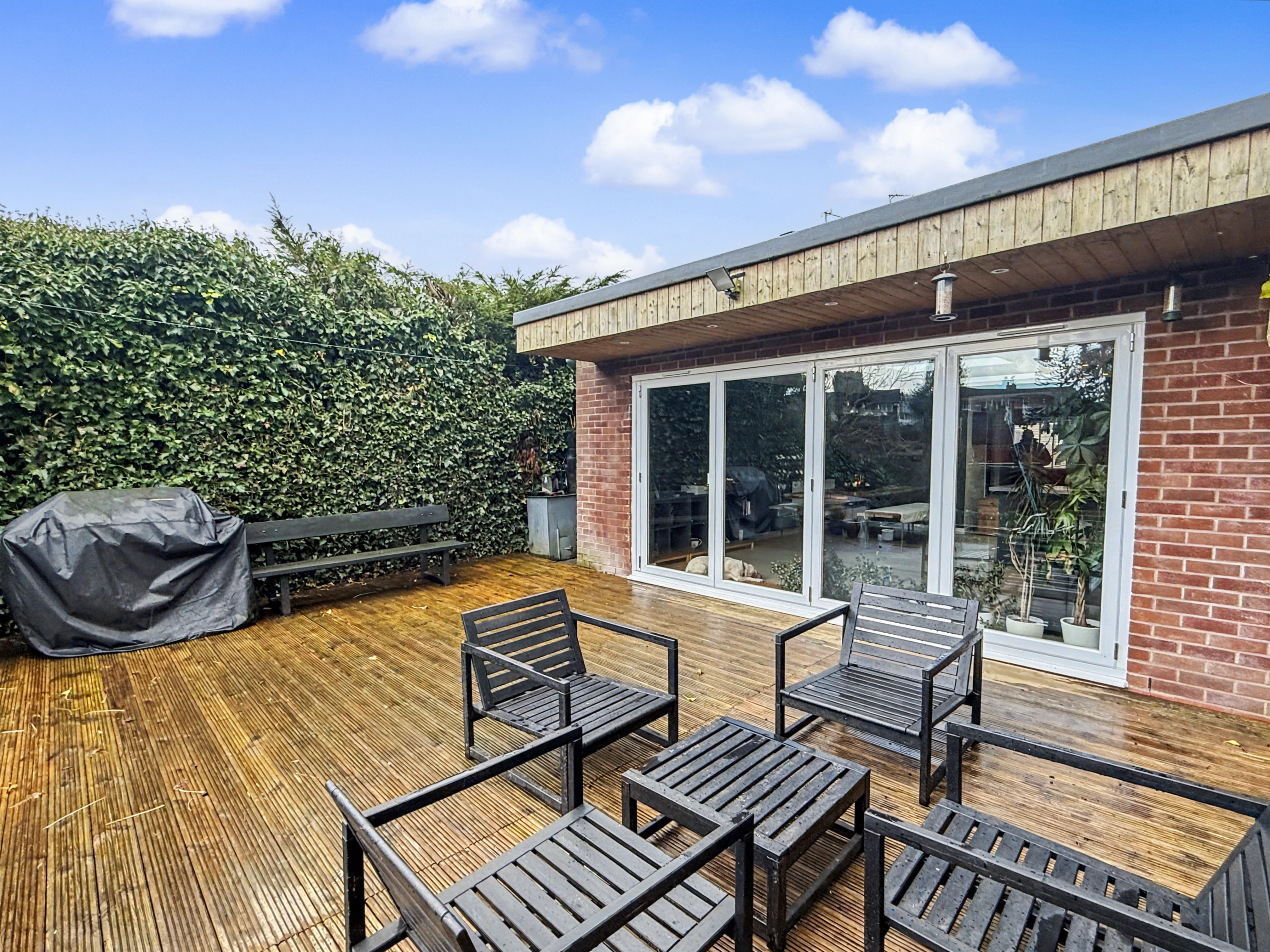 To the first floor, three well-proportioned bedrooms provide comfortable living spaces, each finished with care and attention. The principal bedroom is particularly striking, featuring bi-folding doors that open onto a unique elevated outdoor terrace, positioned above the kitchen extension. This tranquil space offers the perfect spot to enjoy a morning coffee or unwind while taking in the peaceful riverside outlook.