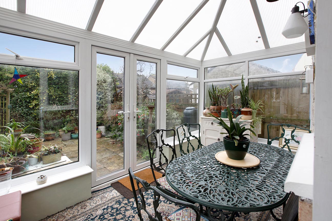 Stepping out of the kitchen and through to the conservatory, there is a door immediately to your left which takes you out to the driveway and further doors leading to the rear garden.