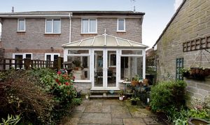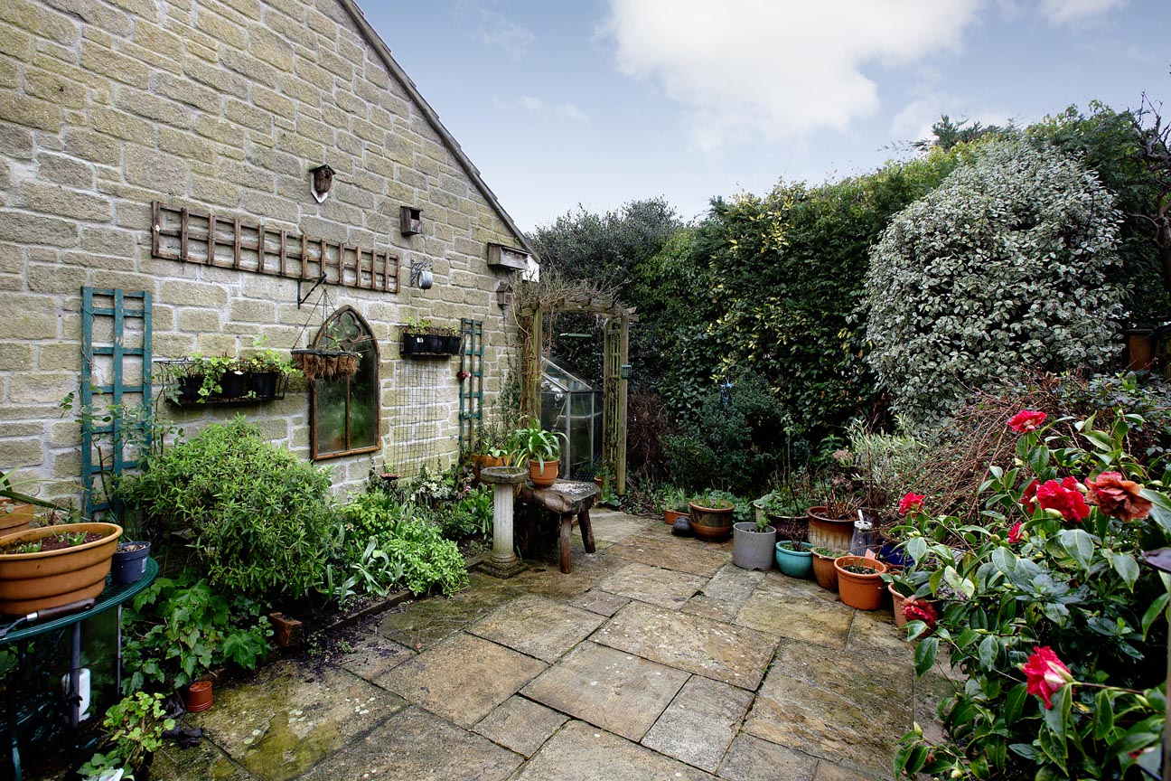 Enclosed rear garden accessed via the conservatory. The garden has been paved so it is easily maintainable, with borders and greenhouse.