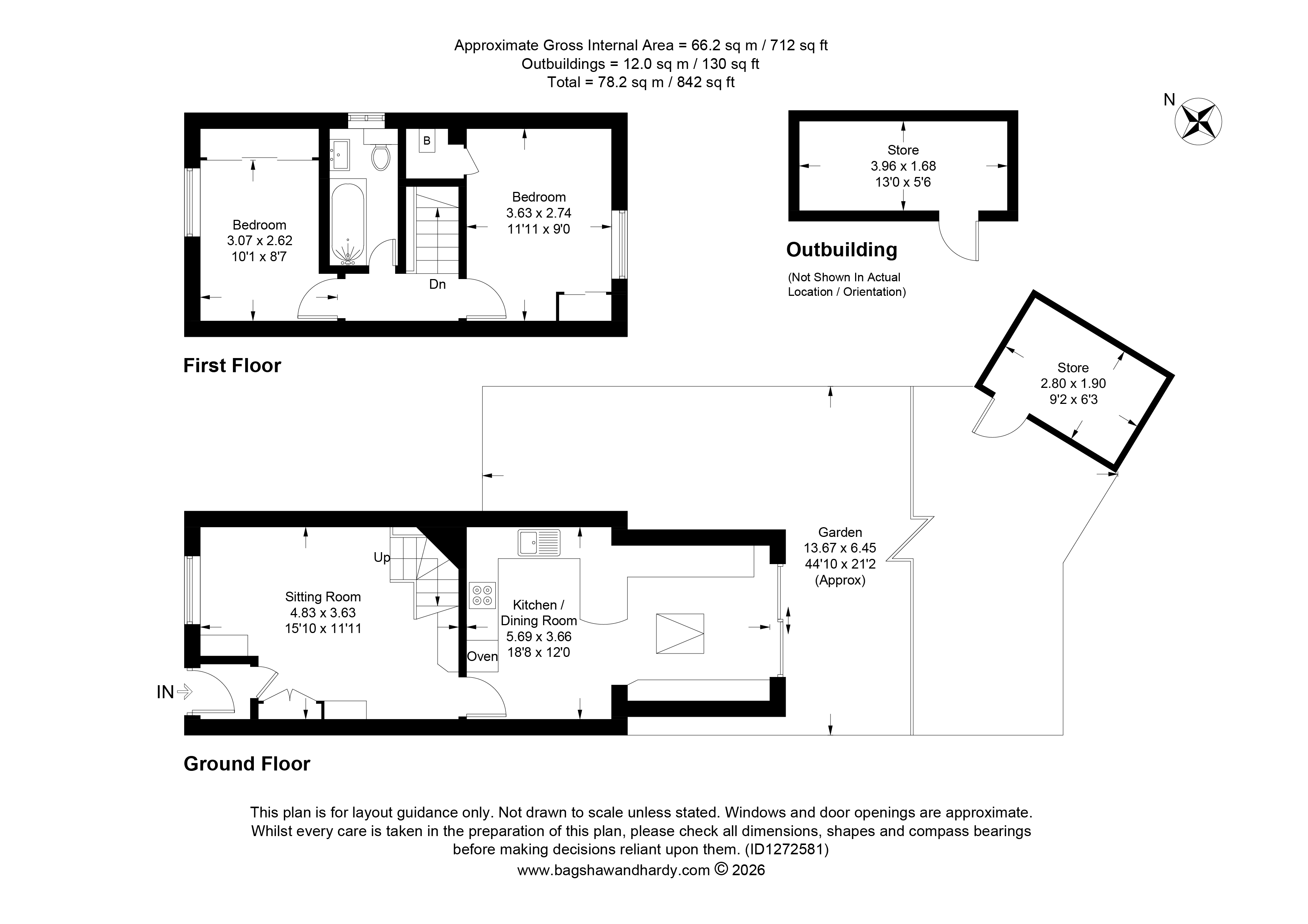 Approximate Gross Internal Area: 712 Sq Ft / 66.2 Sq M