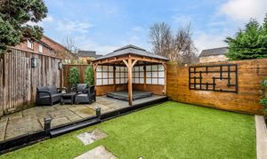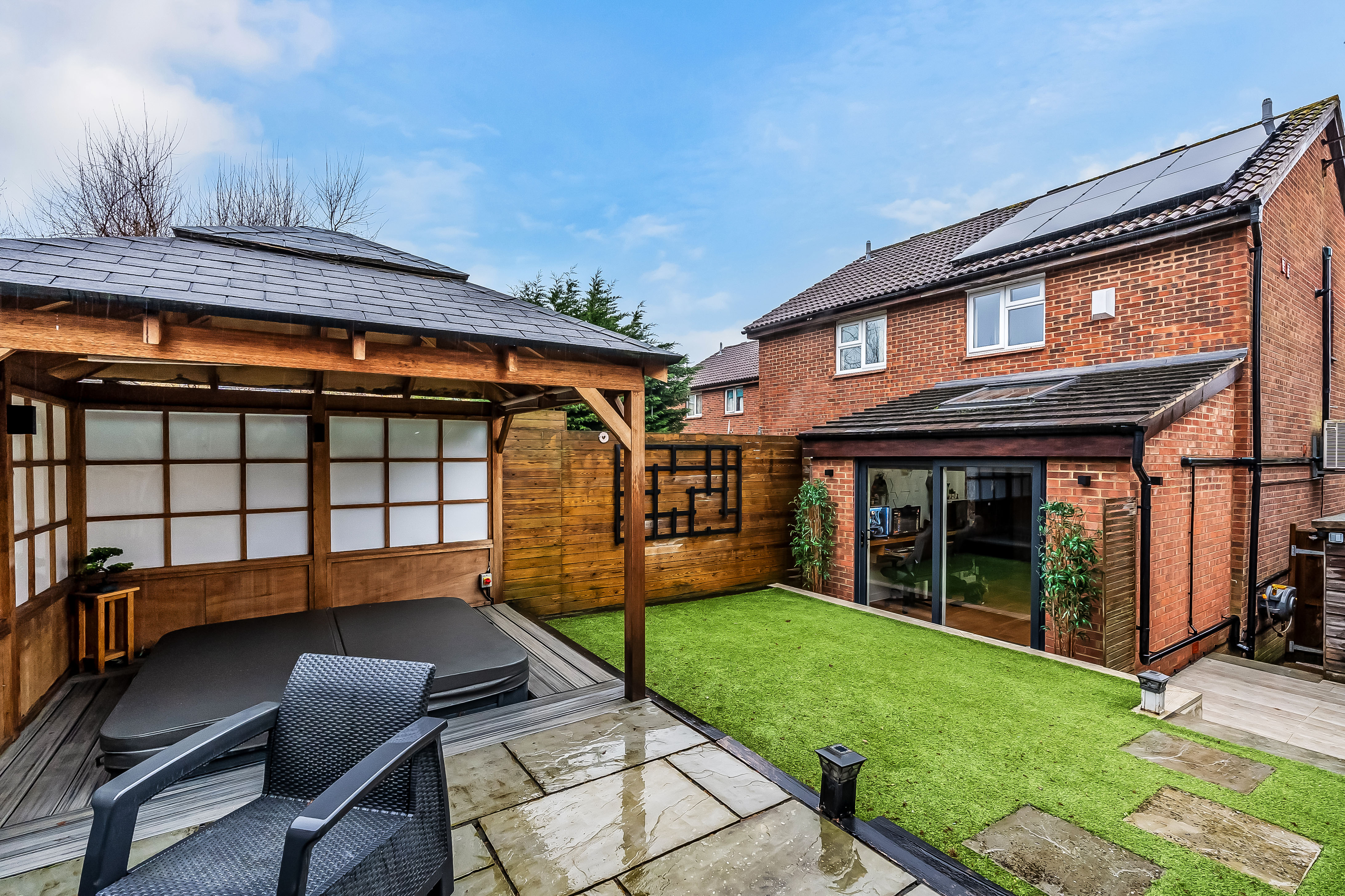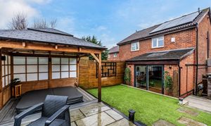 Outside, the property offers off road parking via a front driveway, along with a Zappi EV charger. There is side access and a sizeable timber storage outbuilding. The rear garden is a real highlight, cleverly landscaped to create a low maintenance yet striking outdoor space. Designed for all year use, it features a sunken covered hot tub, Indian stone paved patio, composite decking boards and artificial lawn, all enhanced by feature lighting. A further ‘hidden’ timber clad storage area completes the garden.