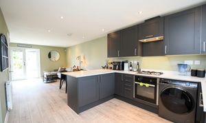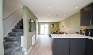 As you enter the property you go into an open plan living, dining and kitchen area - complete with modern fitted units, a storage cupboard and patio doors to the rear. There is also a downstairs W/C accessed from this area.
