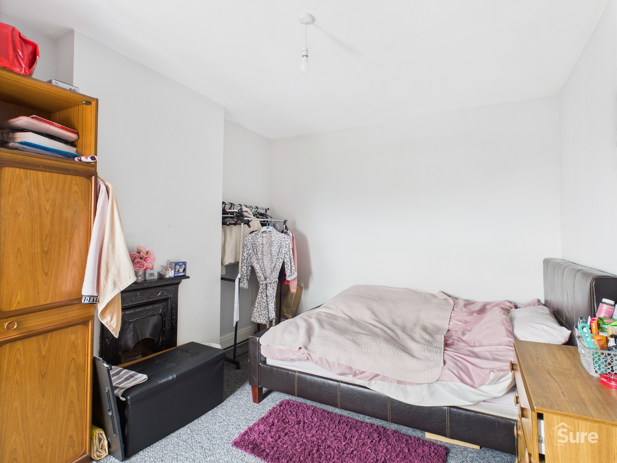 Bay window to front and window to rear. Gas fire set into wooden surround and hearth. Two radiators.