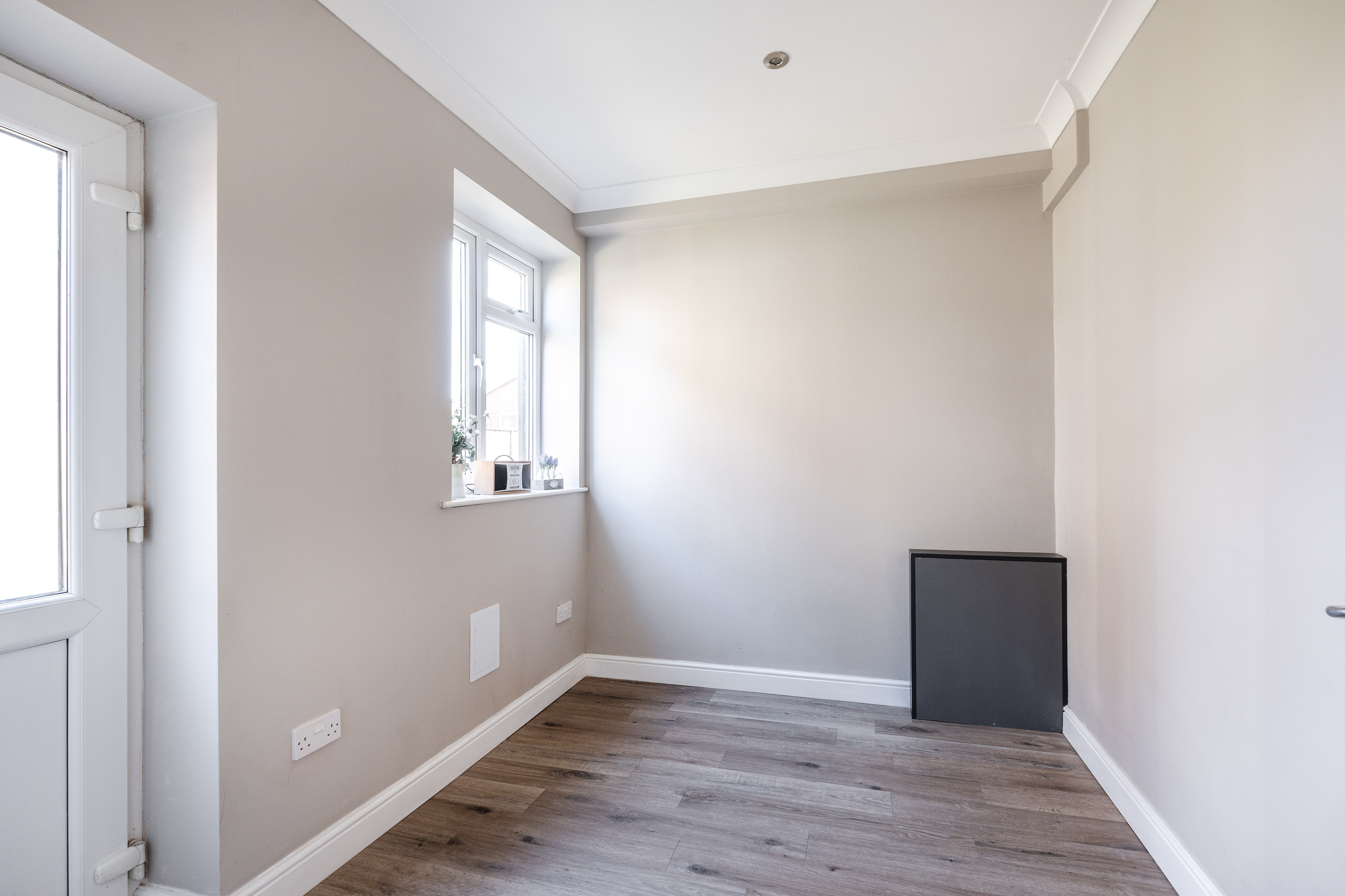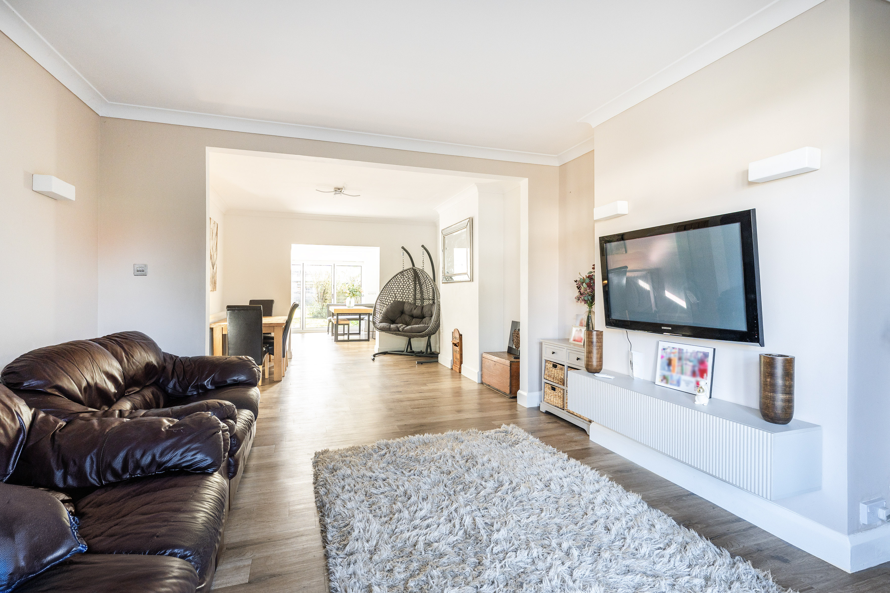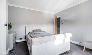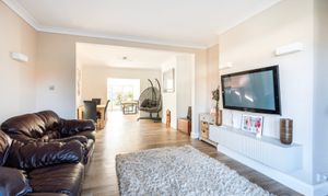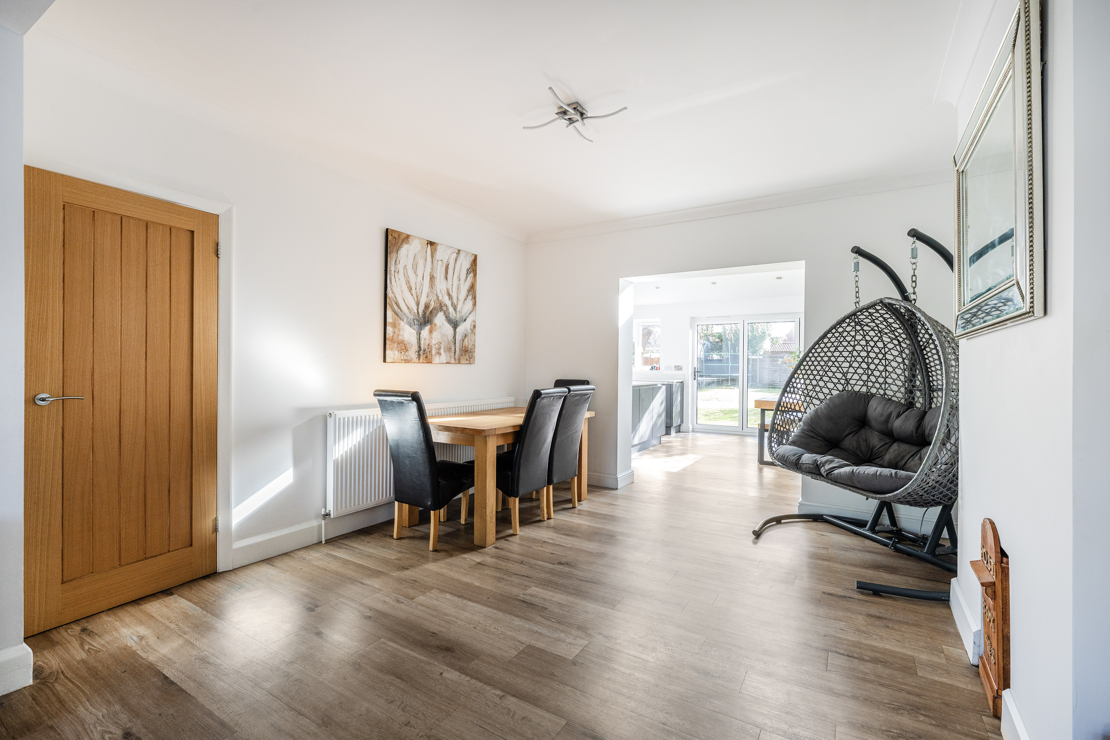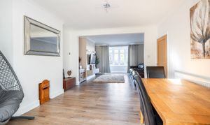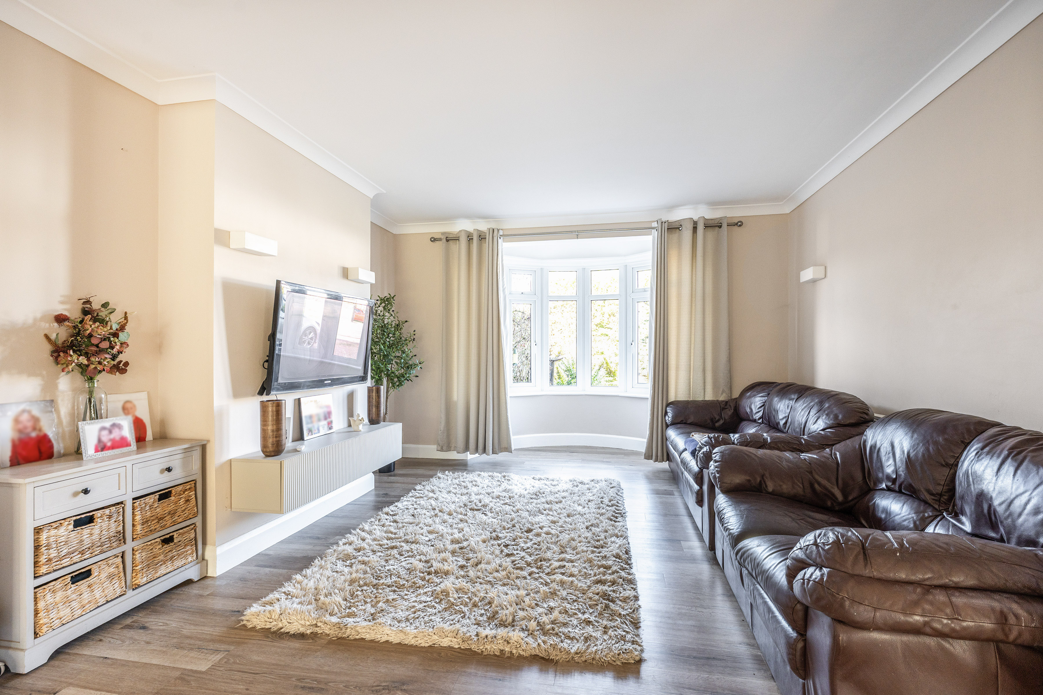 The main sitting room is a bright and welcoming space, with the bay window drawing in plenty of natural light. It flows through to a second reception area, creating a layout that feels open yet still clearly defined. This flexible arrangement works well for a range of lifestyles, whether you need space to unwind, host guests, or work from home.