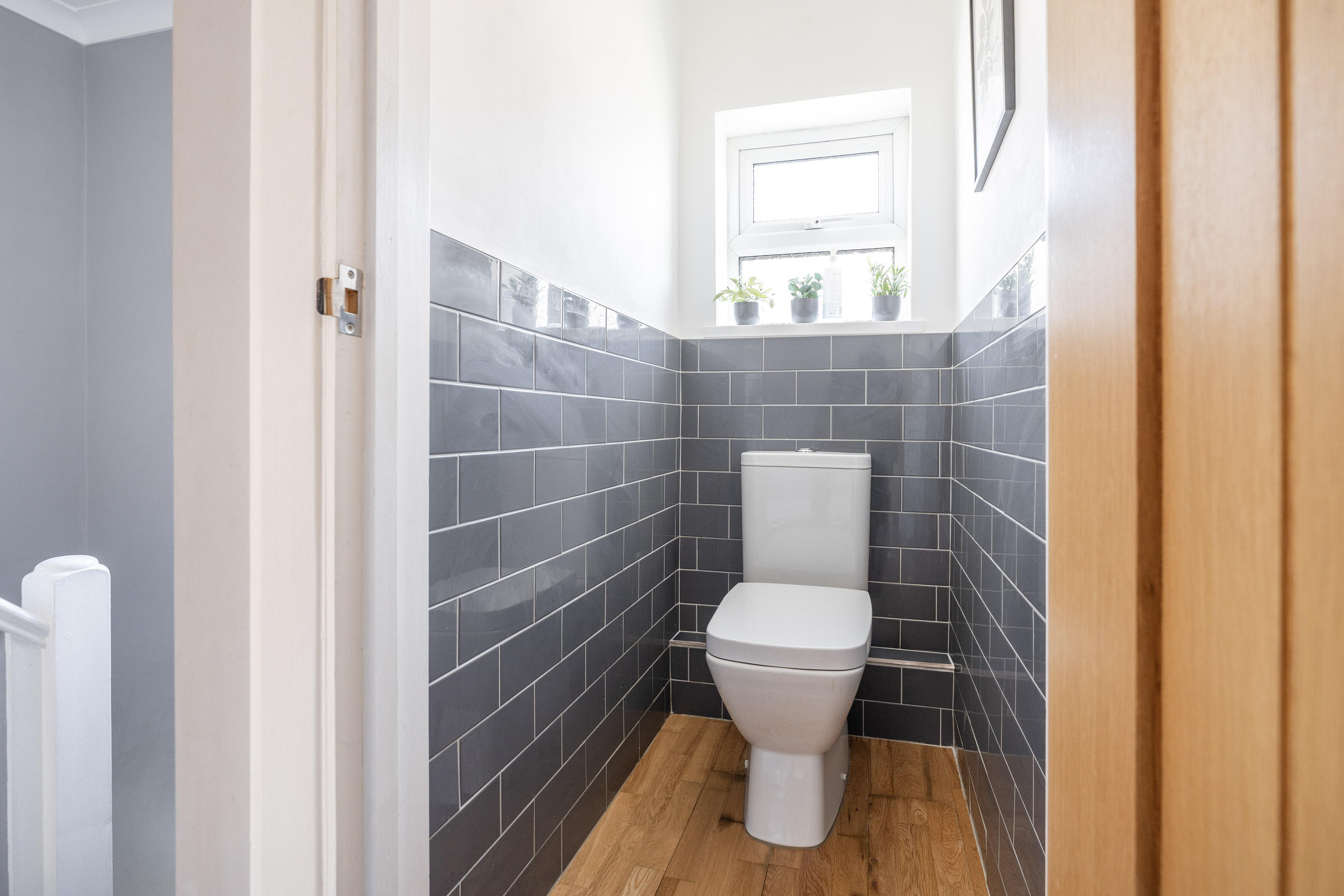 Inside, the hallway sets the tone for the rest of the home, showcasing a well-kept interior with wood-effect flooring running seamlessly across the ground floor. A versatile bedroom four/study is also accessed from the hallway, offering flexible use to suit a range of needs. Wooden internal doors paired with chrome fittings give a crisp, modern finish, while a conveniently positioned WC enhances everyday convenience.