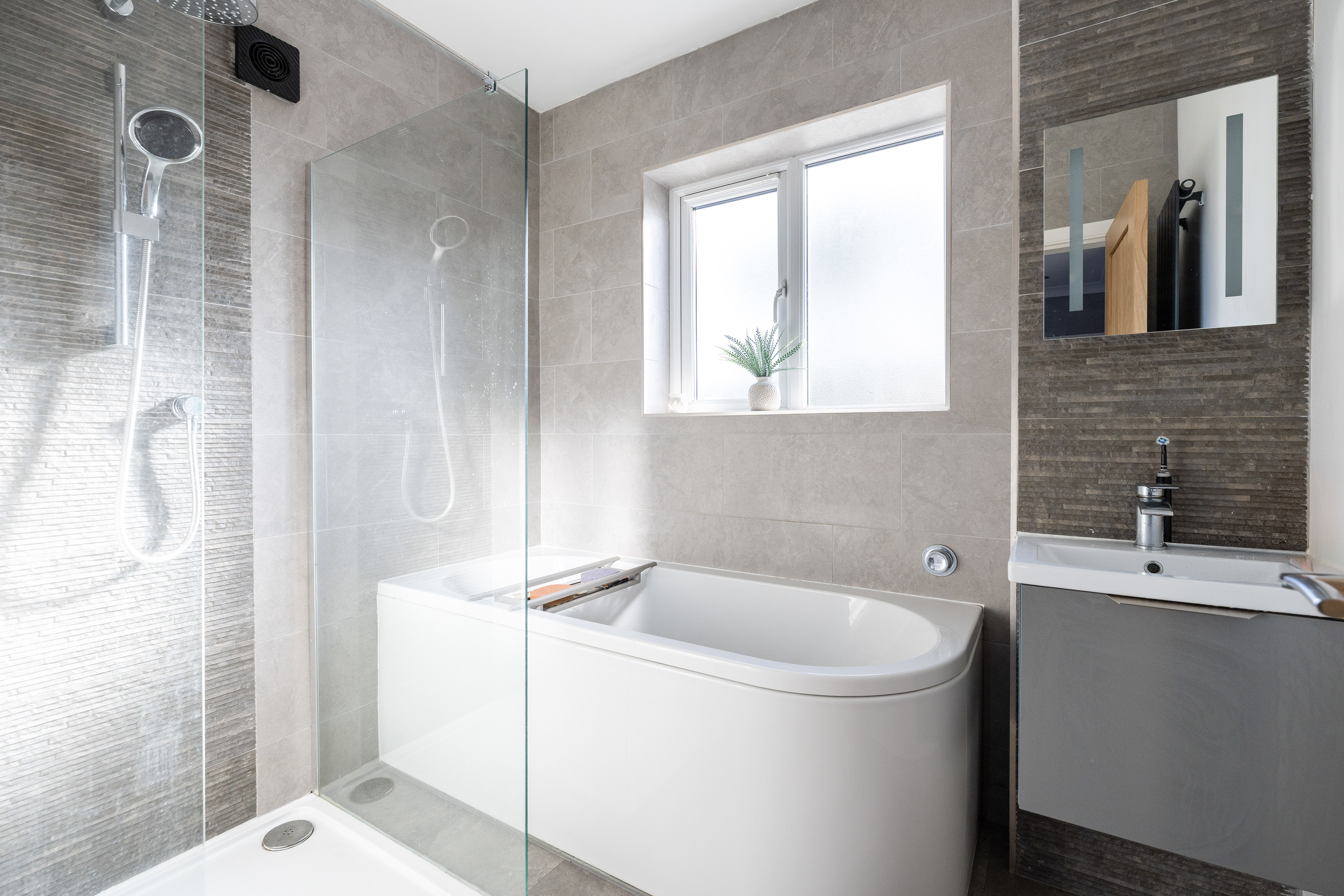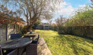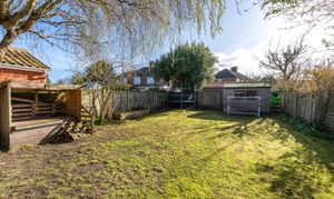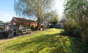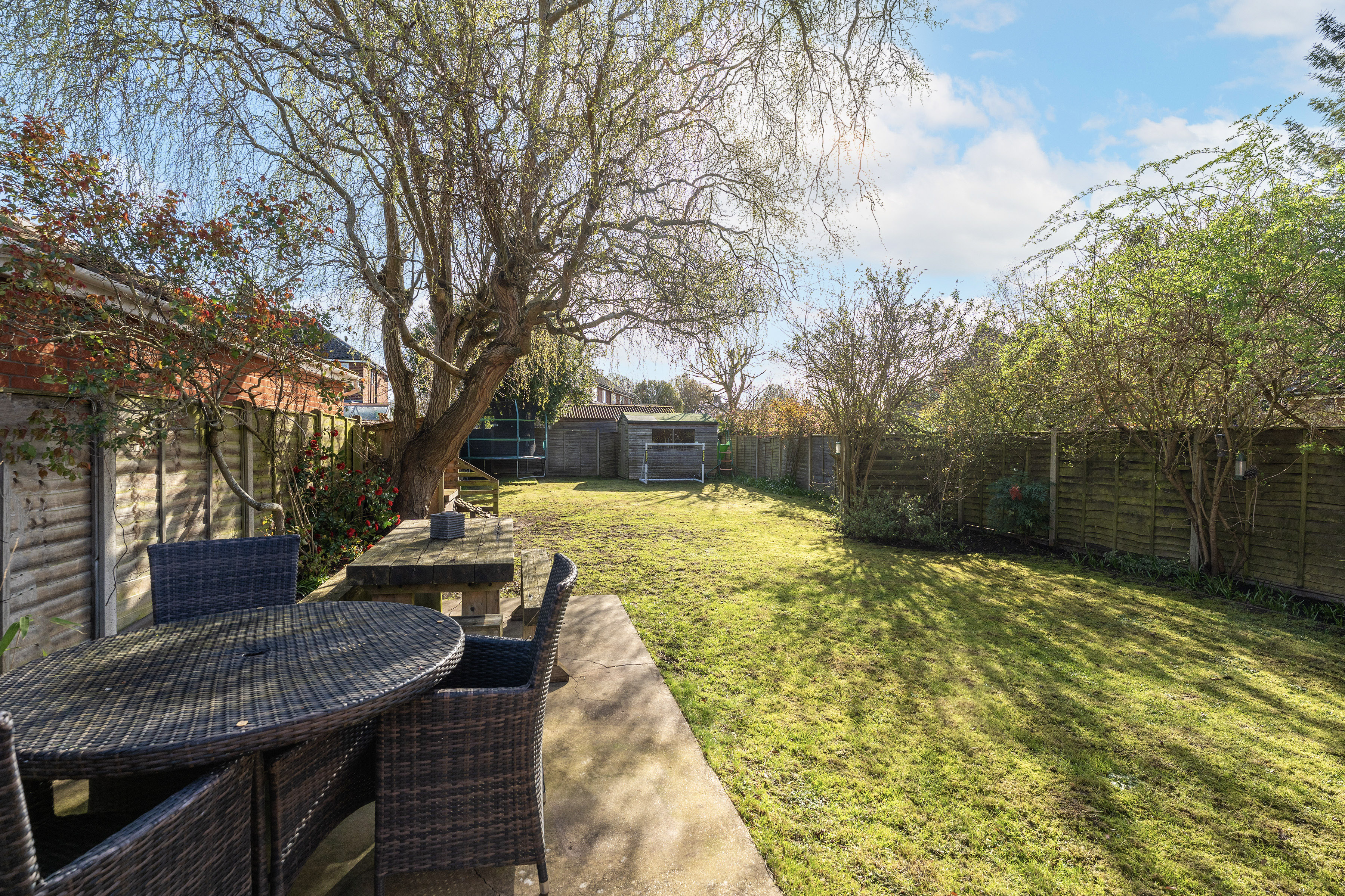 Outside, the rear garden is both spacious and private, mainly laid to lawn with a patio area suited for outdoor dining or simply enjoying the fresh air. Fully enclosed, it provides a secure space for children and pets alike.