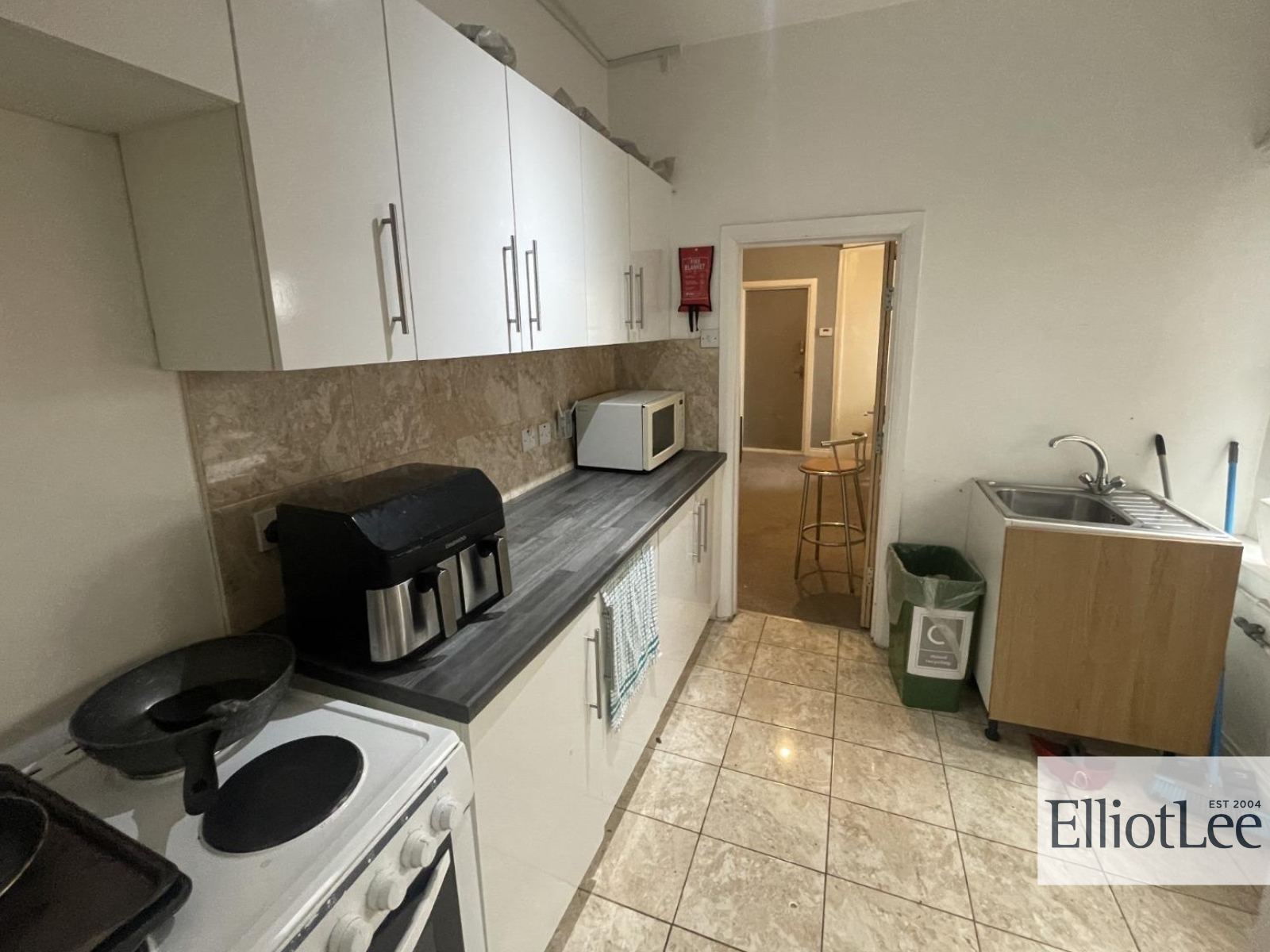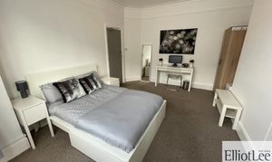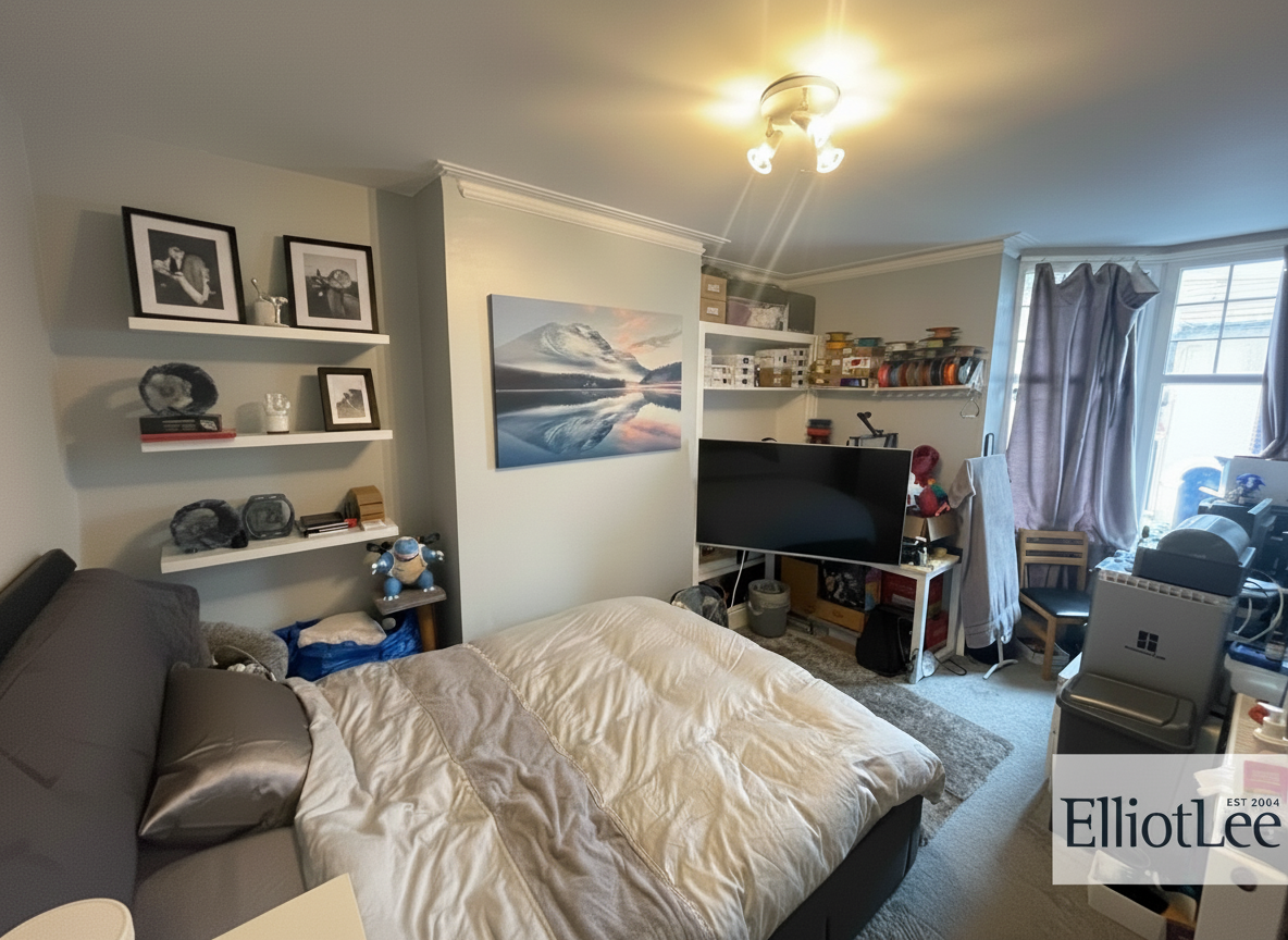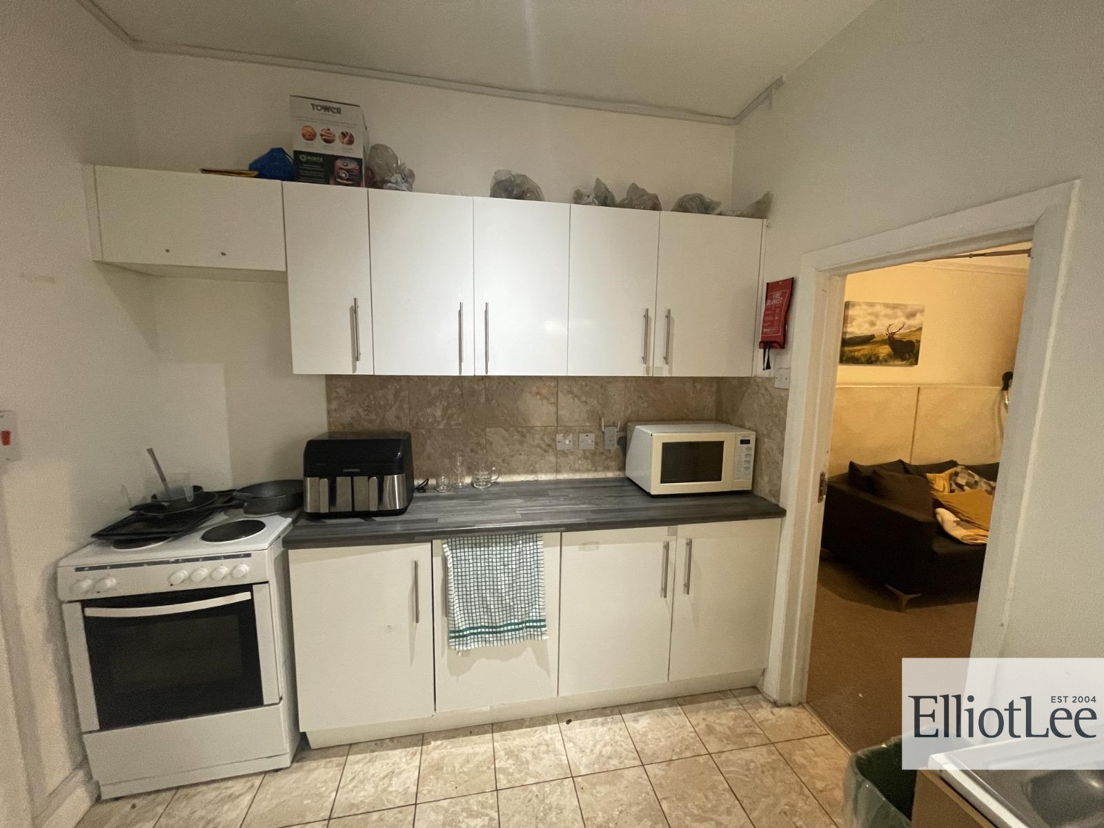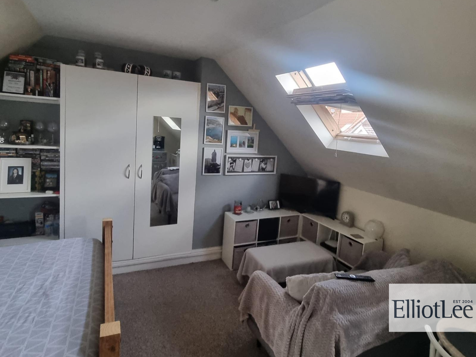 This impressive six-bedroom, end of terrace house blends period character with modern comfort, offering exceptional space across its thoughtfully designed layout. The spacious reception room is flooded with natural light from large bay windows and feature neutral decor, providing a warm and inviting canvas for any style. Each bedroom is well-proportioned, many benefiting from built-in storage and plush carpeting, ensuring comfort and practicality throughout. The versatile attic conversion is enhanced by Velux and skylight windows, creating a bright open-plan living area perfect for relaxation or a home office. The modern, well-appointed kitchen is a standout, equipped with sleek contemporary units, ample storage, integrated appliances, and durable tiled flooring - ideal for cooking and entertaining.