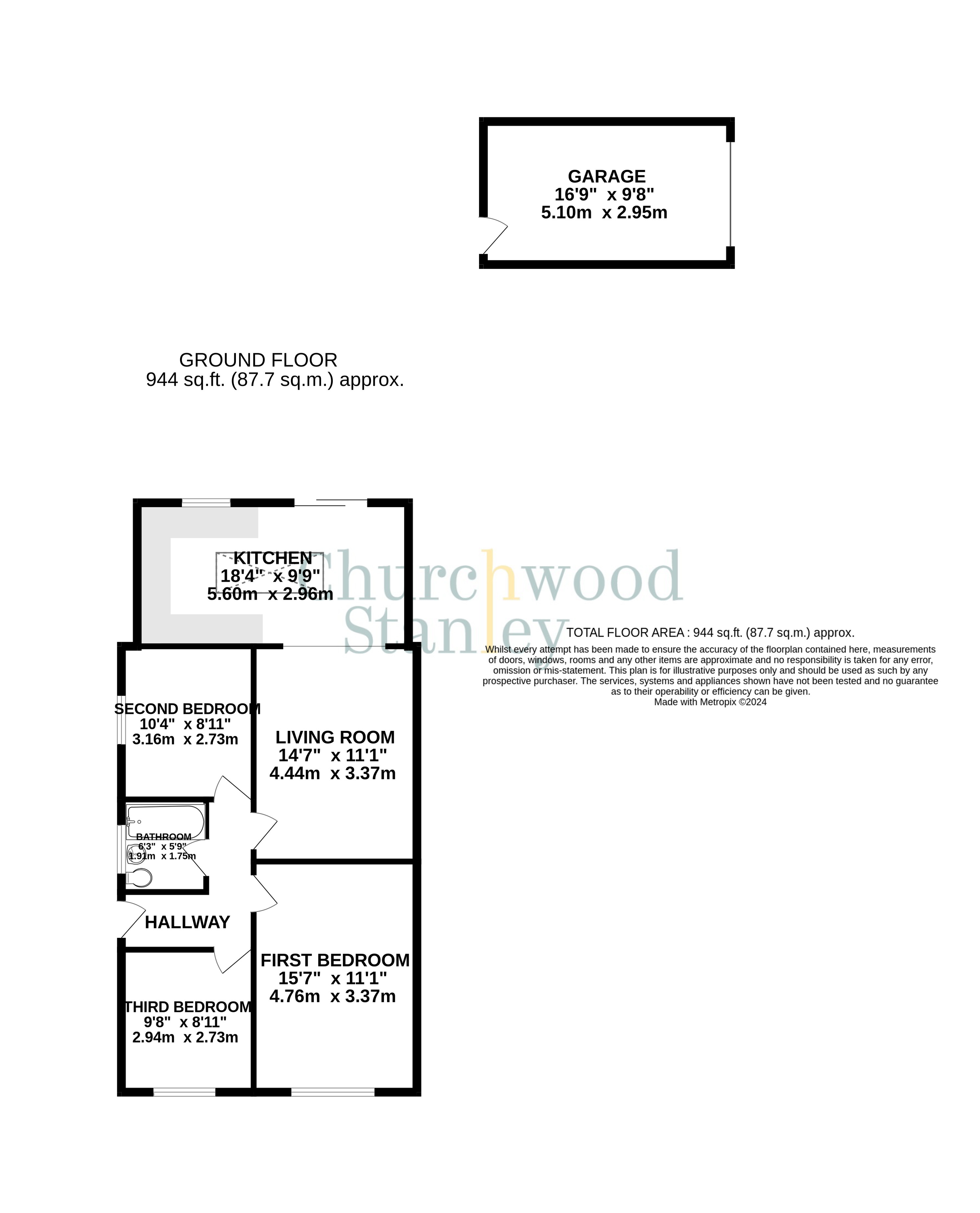 The garage measures 5.1 meters by 2.95 meters and features and up and over door to the front elevation and a personal door that leads you into the garden.