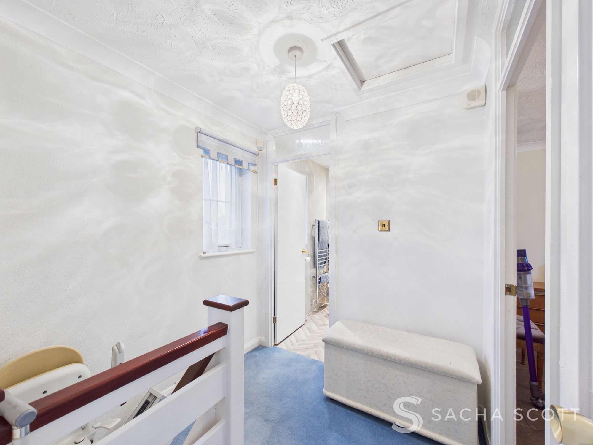 Neutrally presented, the landing area receives good natural light from a window to the side, and offers access to the loft space.