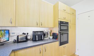 Offering plenty of storage and work surface space, the kitchen offers room for all expected appliancesand overlooks the rear of this good sized terraced home.