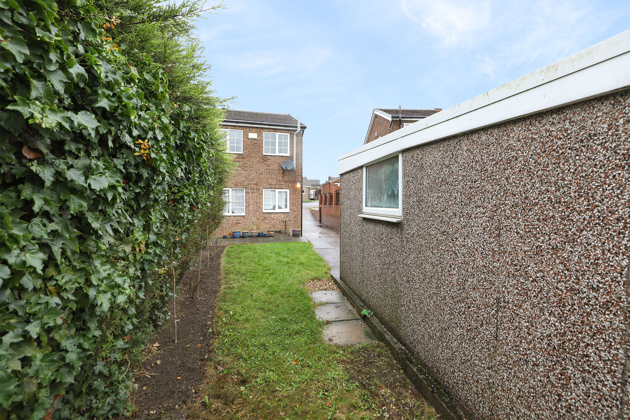 To the front and side of the property, gated driveway parking provides secure off-road space and leads to an external garage, offering excellent additional storage.