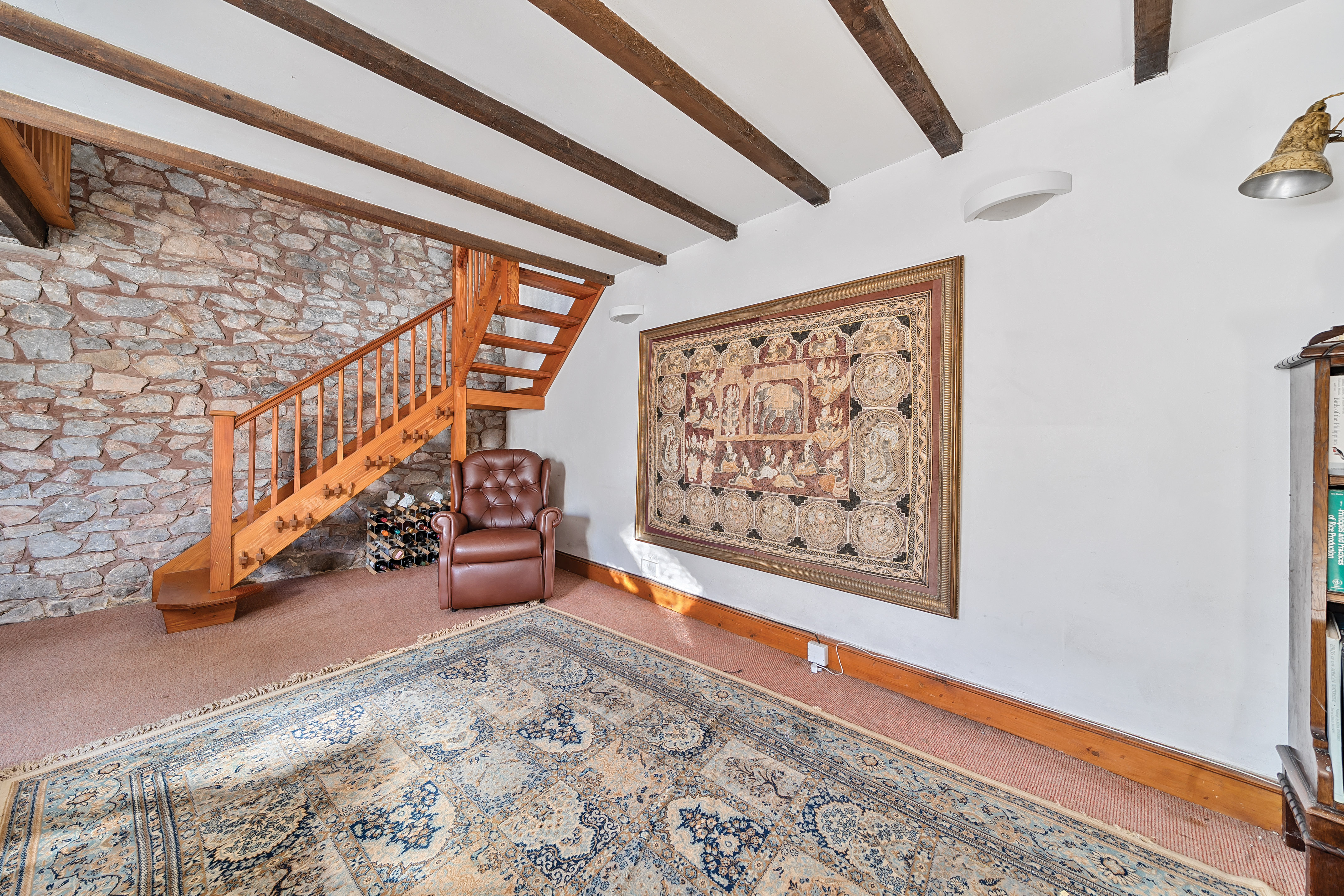 Lily Cottage is a lovely country cottage, parts of which date back to 1760. Beautifully positioned to make the most of the surrounding exceptional rural views, it is full of character. The top floor of the original cider press barn has been converted into a separate one-bedroom flat, and the former stable and hayloft have been integrated into the main cottage. The property boasts a wealth of original features, including picture rails throughout, wood panelling, deep recessed windows, flagstone flooring, exposed beams, and latched doors.