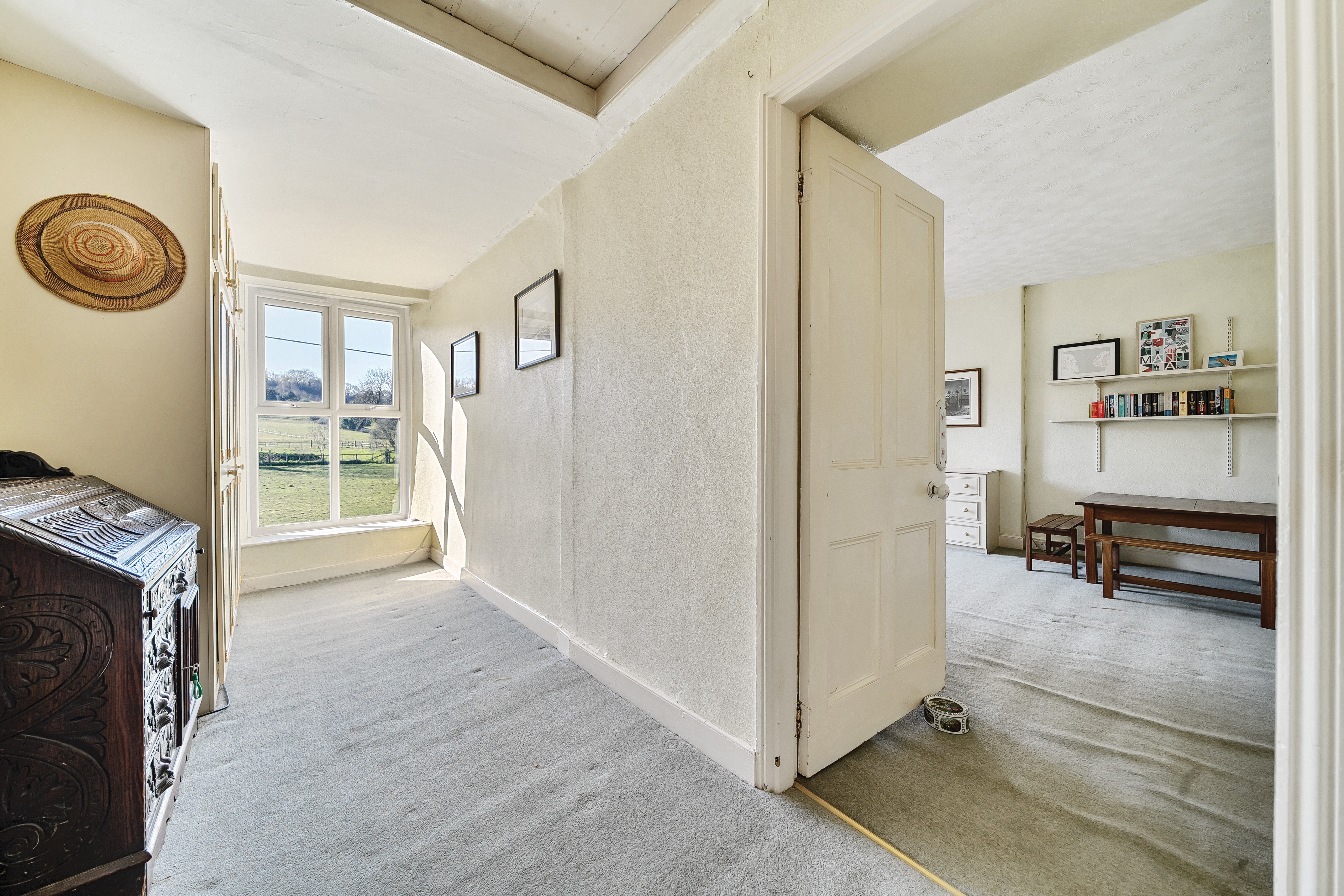 Upstairs, there are a further three good-sized bedrooms. The principal bedroom offers stunning long views toward The Batch and features a practical bank of fitted wardrobes. Adjacent is a space currently arranged as a dressing room, which also benefits from the views and includes additional inbuilt storage.