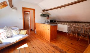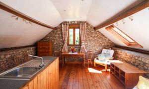 Outbuildings - A unique cider barn offers approximately 212 sq ft of extra accommodation and storage. Currently, it is arranged with a carport that has been used as a workshop, office, and utility area, alongside a second substantial storage barn. A Honduran mahogany staircase leads upstairs to a self-contained flat which features stone walls, stripped floorboards, and exposed beams. With an open-plan living/kitchen/dining area, a small double bedroom, and a bathroom it is a valuable addition to the main house/a great place for teenagers or subject to any necessary consents could provide a source of extra income.