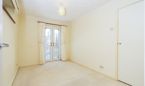 Small side window and Juliette balcony with glazed French doors. Inter-connecting door to the main bedroom.