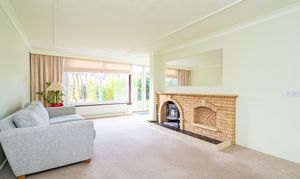 Entering through glazed internal door, this light room has a fireplace and brick surround with log burner. Large windows overlook the south facing garden.