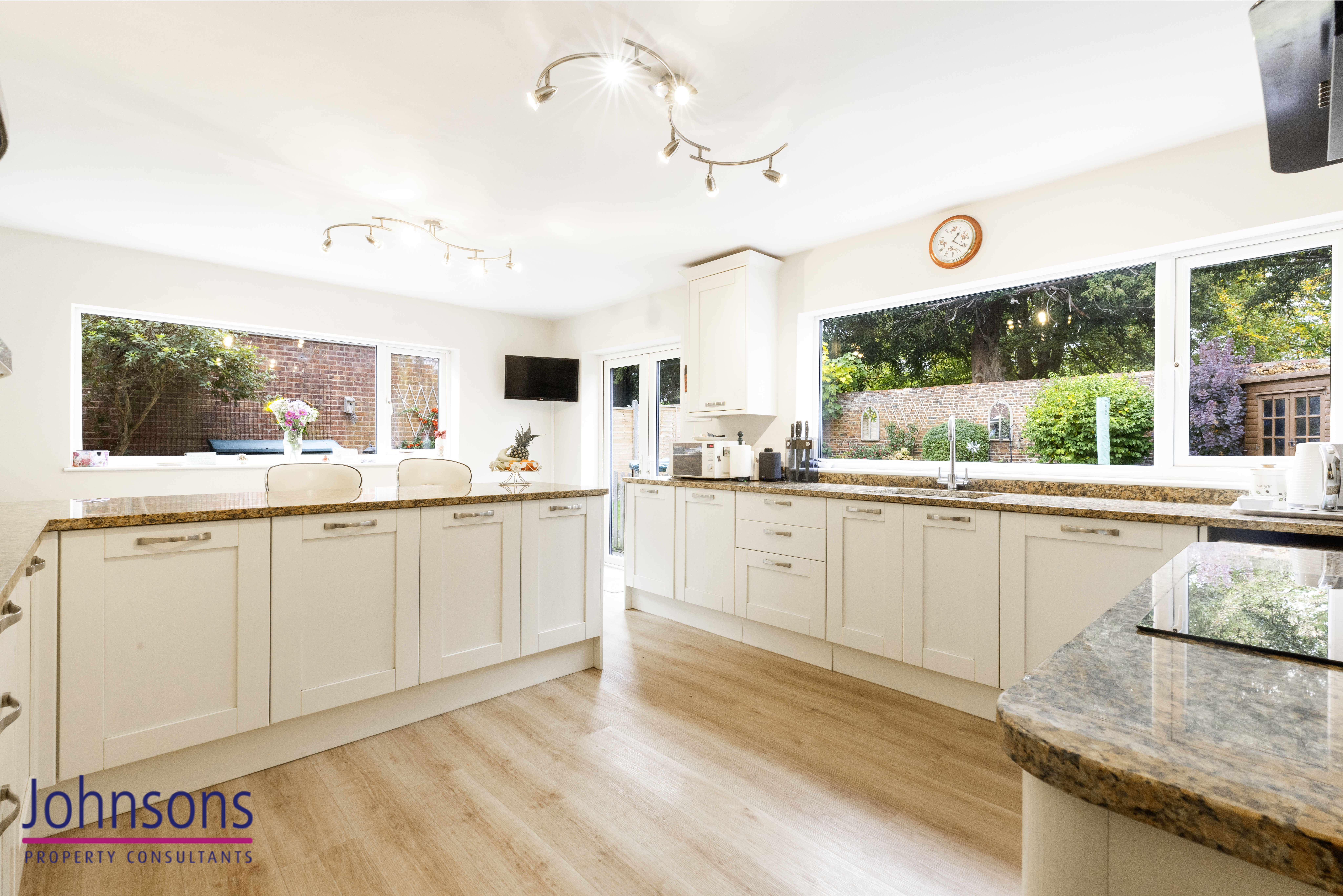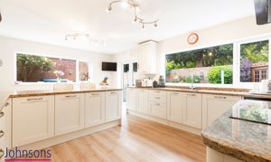 - Upgraded and bright kitchen, breakfast room with an extensive range of cupboard units and high-quality worktops, breakfast bar, integrated appliances and patio doors opening onto the rear gardens
