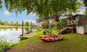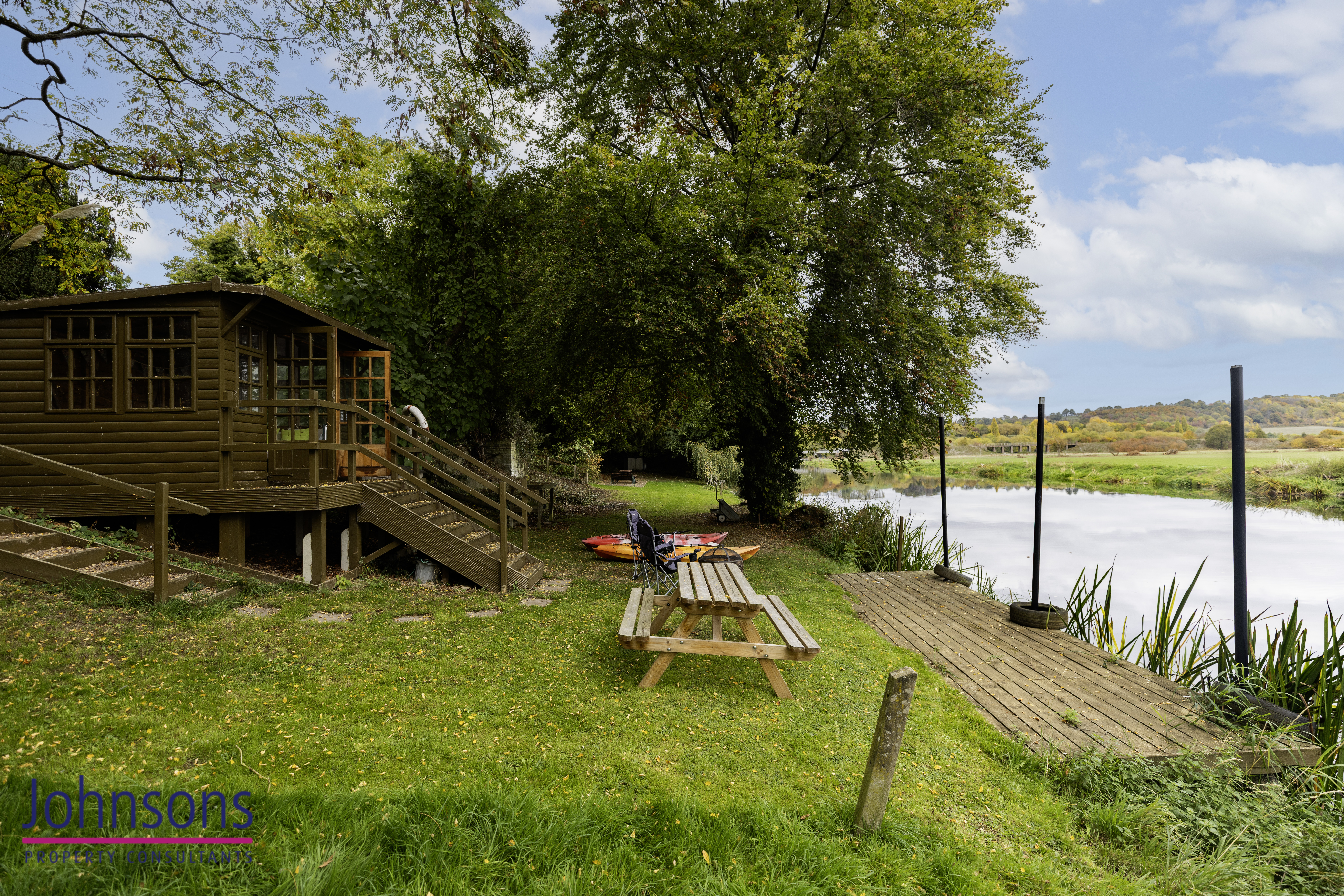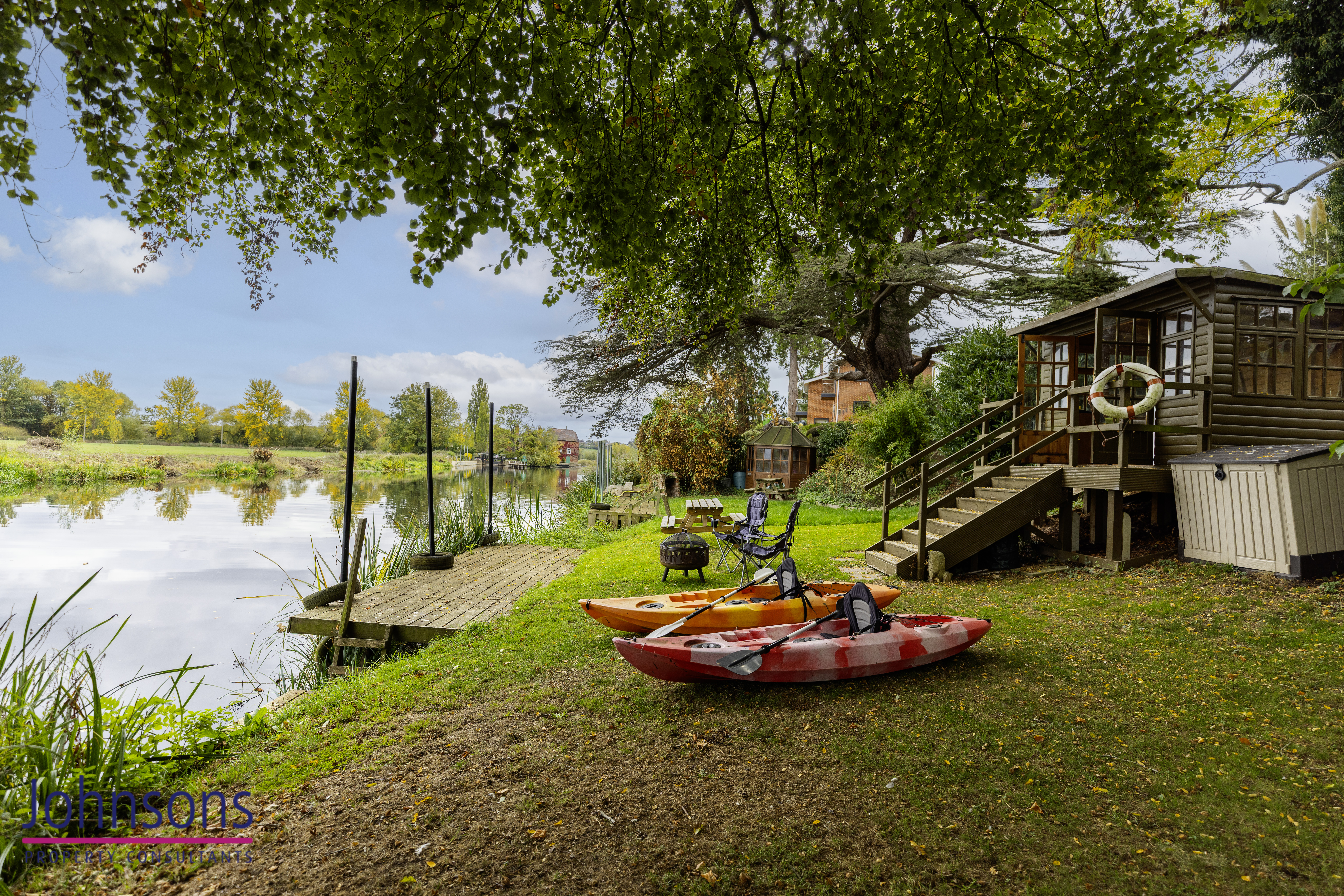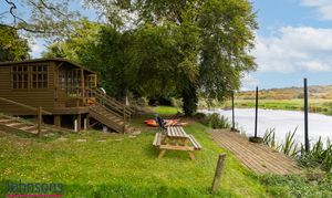 A separate garden across the lane provides an idyllic retreat by the water, complete with a private mooring, summerhouse and sweeping views across open countryside. It’s a setting made for slow summer evenings, boating, picnics and peaceful escape, while the main rear garden behind the house offers its own haven of outdoor space, with lawns, established borders, a patio for dining and an additional summerhouse.