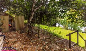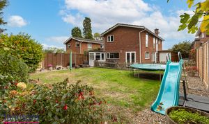 - Rear gardens combining lawns, patio, established planted borders and a summer house