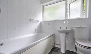 Upstairs, the home offers three well-proportioned bedrooms, including two doubles and a comfortable single, which would also make a great home office or nursery. The bedrooms are served by a modern family bathroom fitted with a bath, overhead shower, basin and WC.