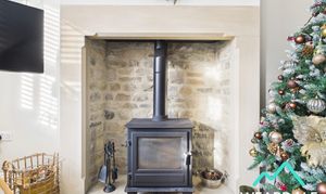 - Positioned to the front of the property, accessed from the entrance hallway, and being open plan (7.06m x 4.18m) with the kitchen - Double-glazed uPVC window with deep wooden sill to the South-Western aspect, looking over the front garden, and providing lovely views of the surrounding hillsides - Laminate flooring - Neutrally decorated - Feature log burner set on a stone hearth with stone surround - Wall mounted light fitting - School style radiator - Space for free-standing lounge furniture