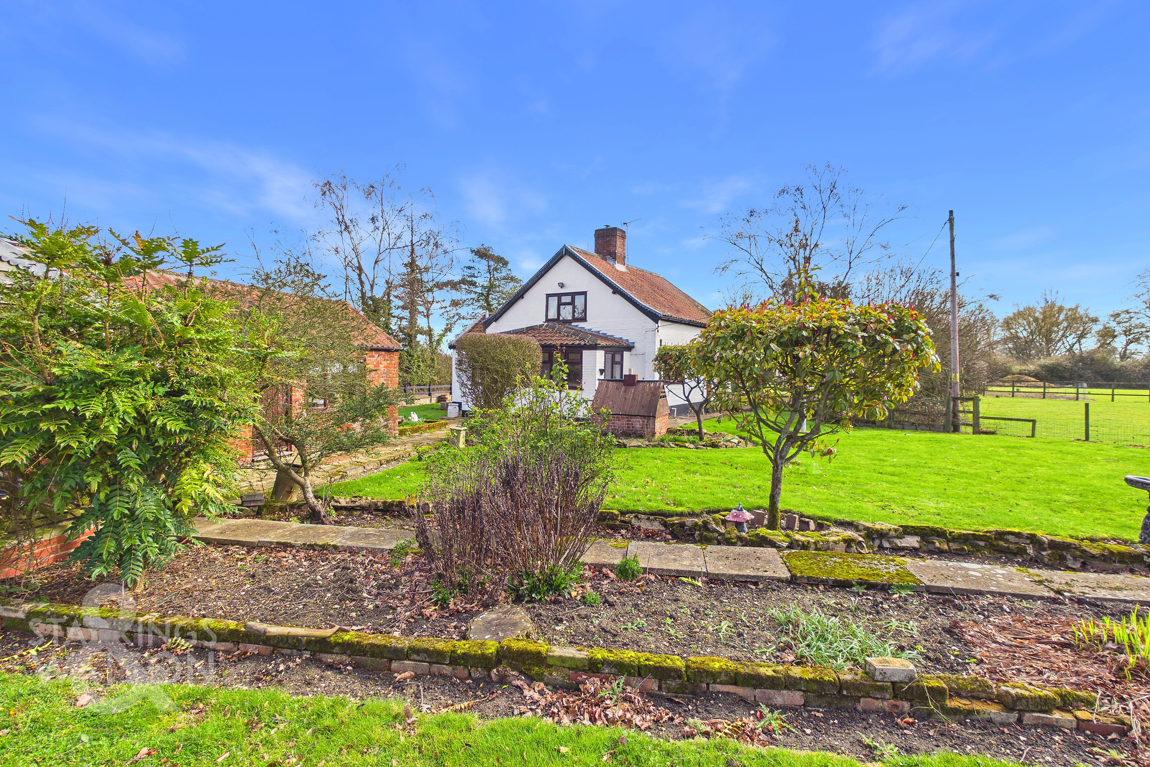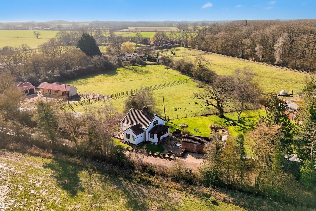 NO CHAIN. This charming DETACHED COTTAGE with ANNEXE/HOME OFFICE options, presents a unique opportunity to enjoy RURAL LIVING in a picturesque village setting. Occupying a generous plot of approximately 0.35 ACRES (stms), the main COTTAGE extends to around 1,076 Sq. ft (stms) and is complemented by a versatile 182 Sq. ft (stms) annexe, ideal for use as a home office or guest accommodation. The cottage itself offers a WELCOMING and SPACIOUS LAYOUT, featuring a 21’ SITTING ROOM with delightful views over OPEN FIELDS, study space, bright 16’ GARDEN ROOM, and a well-appointed 16’ KITCHEN/BREAKFAST ROOM complete with UTILITY SPACE. The ground floor also benefits from a FAMILY BATHROOM and a convenient W.C, while the first floor hosts TWO comfortable BEDROOMS, one of which enjoys the added luxury of an en suite W.C. CHARACTER FEATURES and an abundance of NATURAL LIGHT creating a warm and inviting atmosphere throughout, making this a perfect home for those seeking both comfort and flexibility. The GARDENS and outside spaces have been thoughtfully designed to enhance the TRANQUIL SETTING and provide a wonderful environment for relaxation and entertaining. The property is positioned to the corner of the plot, with the principal gardens laid to lawn and interspersed with a variety of MATURE PLANTING and TREES. A pathway leads to the DETACHED ANNEXE, which is accompanied by a useful storage area and a separate WORKSHOP, catering to a range of hobbies or work-from-home needs.