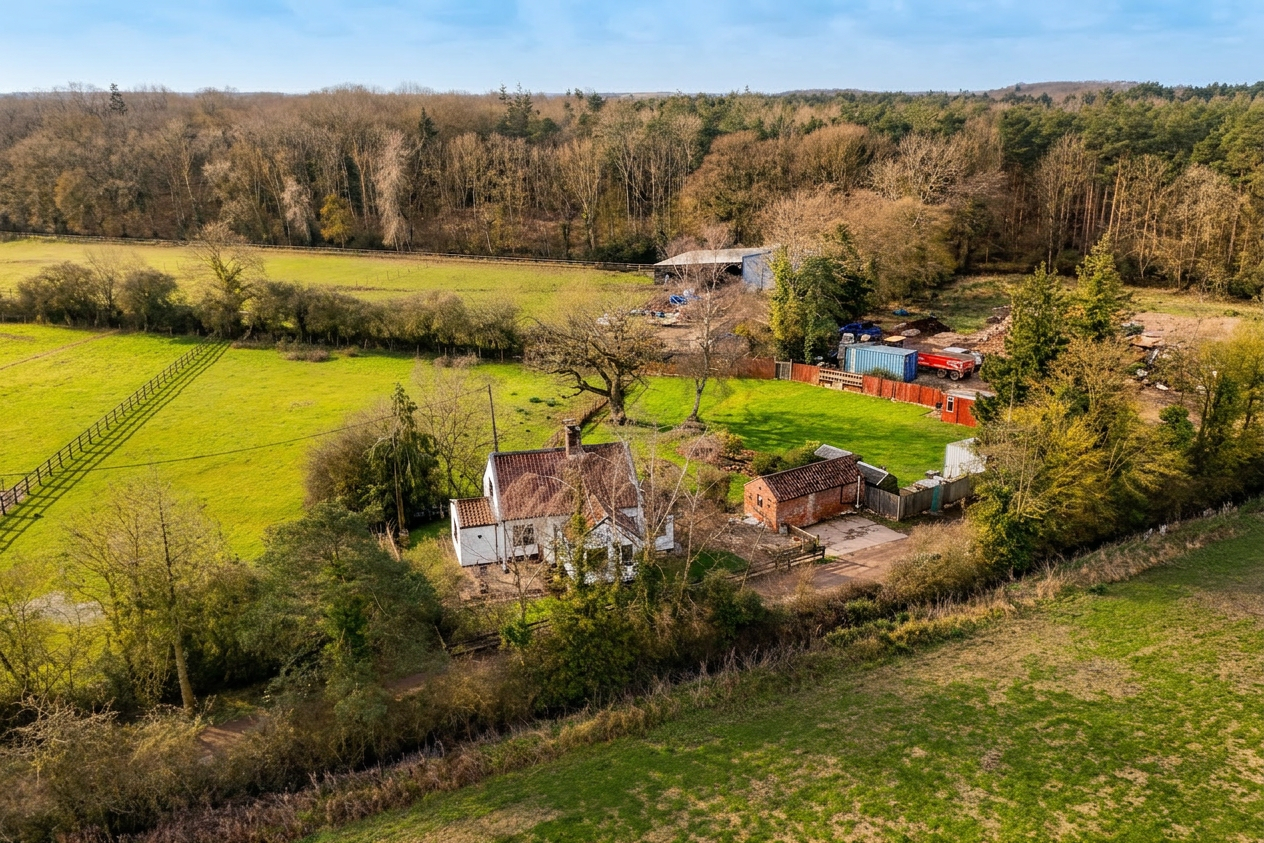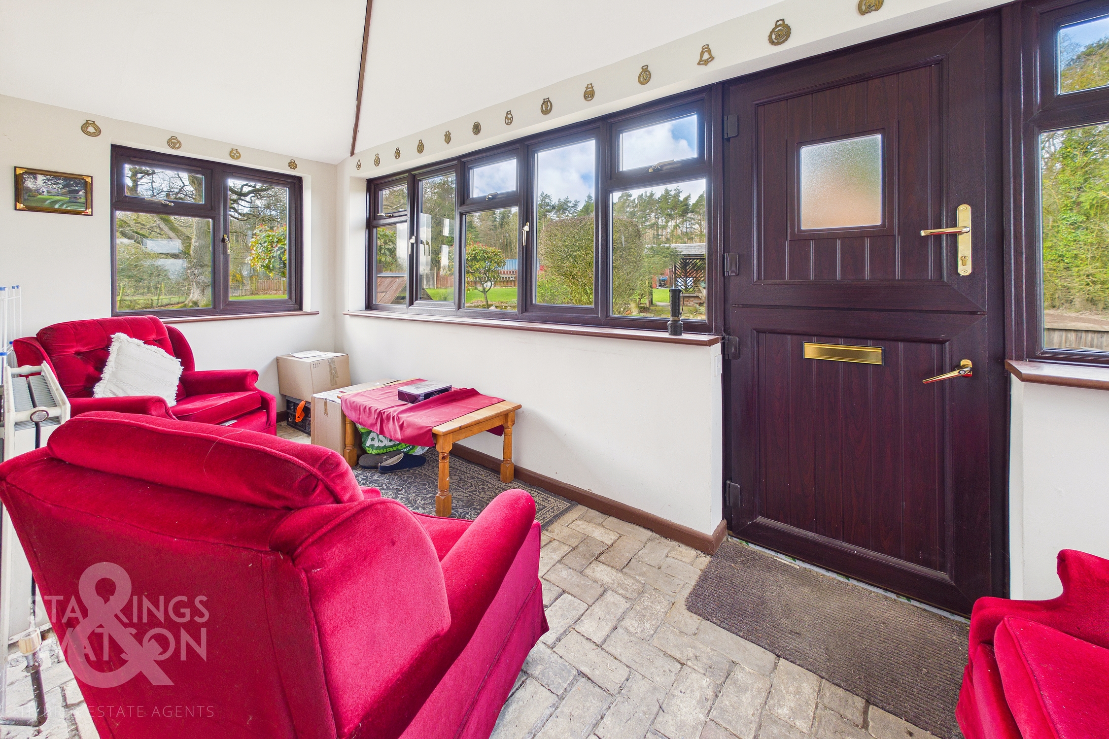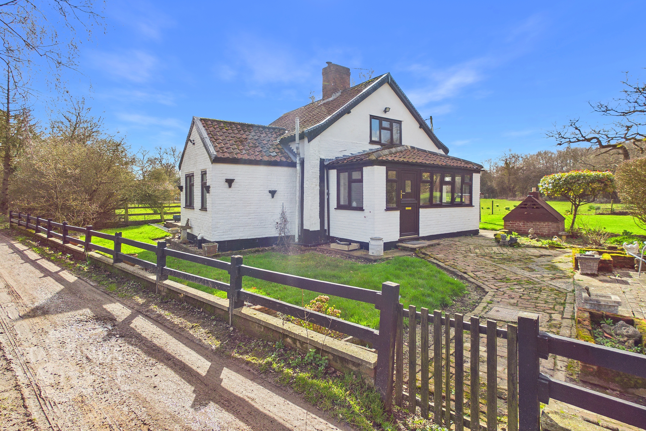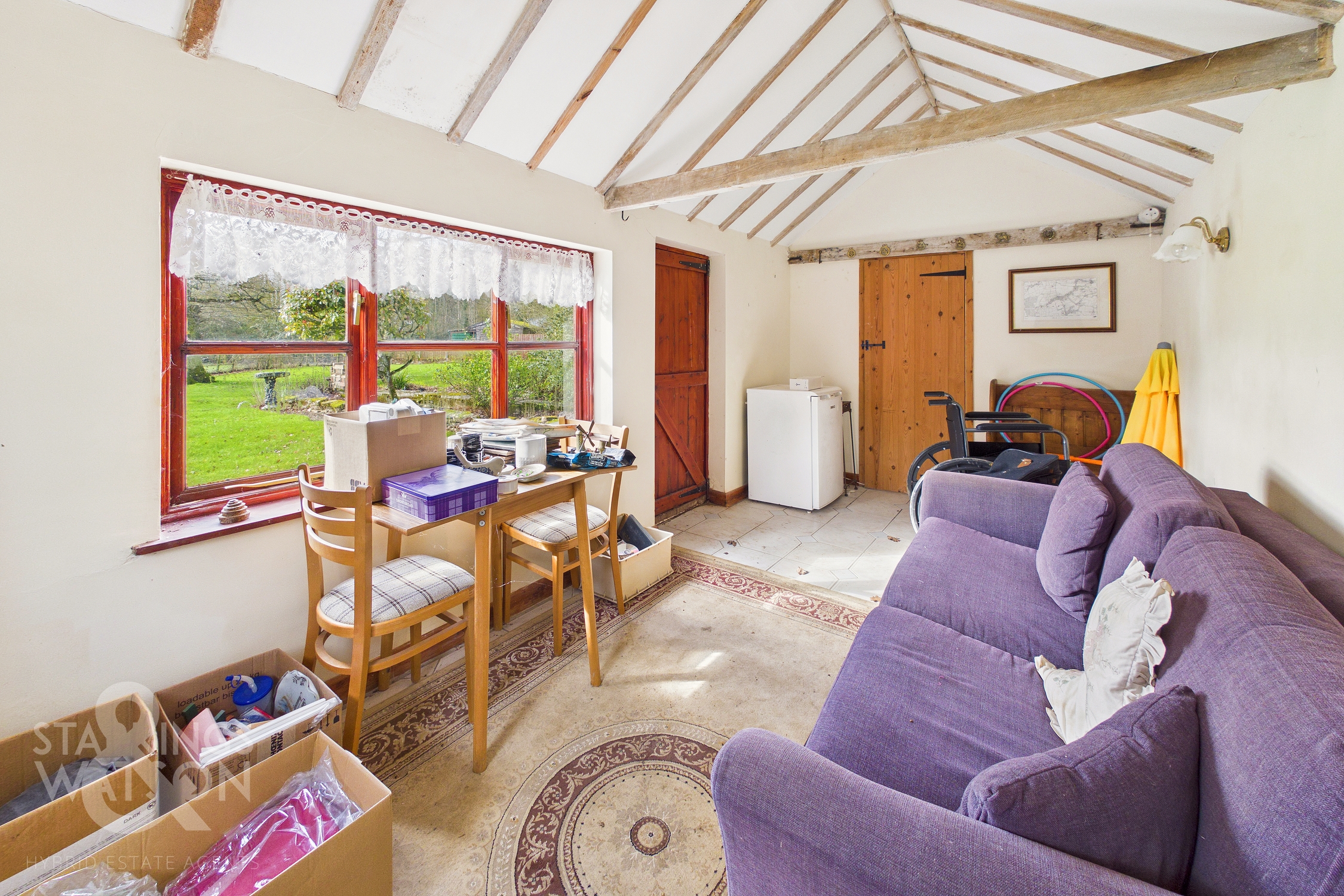 The property sits on a private un-made road, whilst sitting adjacent to a commercial premises. The land is held on two separate title deeds. The garden room suffered subsidence in recent years, and was fully repaired and replaced via the clients insurer. The wood burner is decorative only.