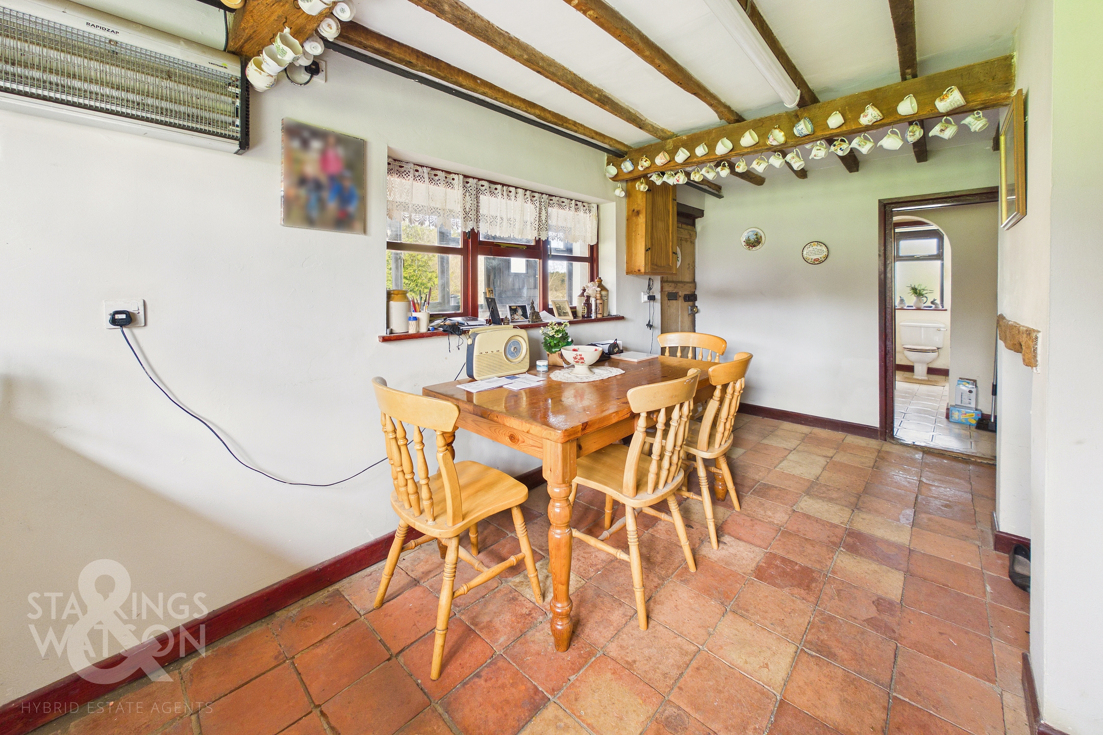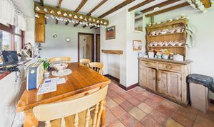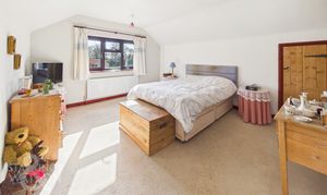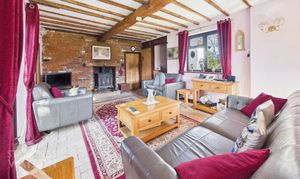 Accessed via a stable door and entering the property via the garden room, this ideal meet and greet space offers brick tiled flooring under foot, and views across the garden. Pamment tiled flooring flows under foot with a feature fire place, with the kitchen offering storage, with space for an electric cooker, fridge/freezer and washing machine. Views overlook the garden with ample space for a table. A door takes you to the sitting room, whilst a utility room offers further storage and space for appliances. A separate W.C and family bathroom lead off, with the bathroom including a shower and bath, with tiled walls and flooring. The main sitting room is centred on a feature exposed brick fireplace, with space for a wood burner. Brick tiled flooring flows underfoot, with triple aspect views including French doors to the garden, exposed timber beams and stairs to the first floor landing. A study is tucked to one corner, with shelving and a desk area.