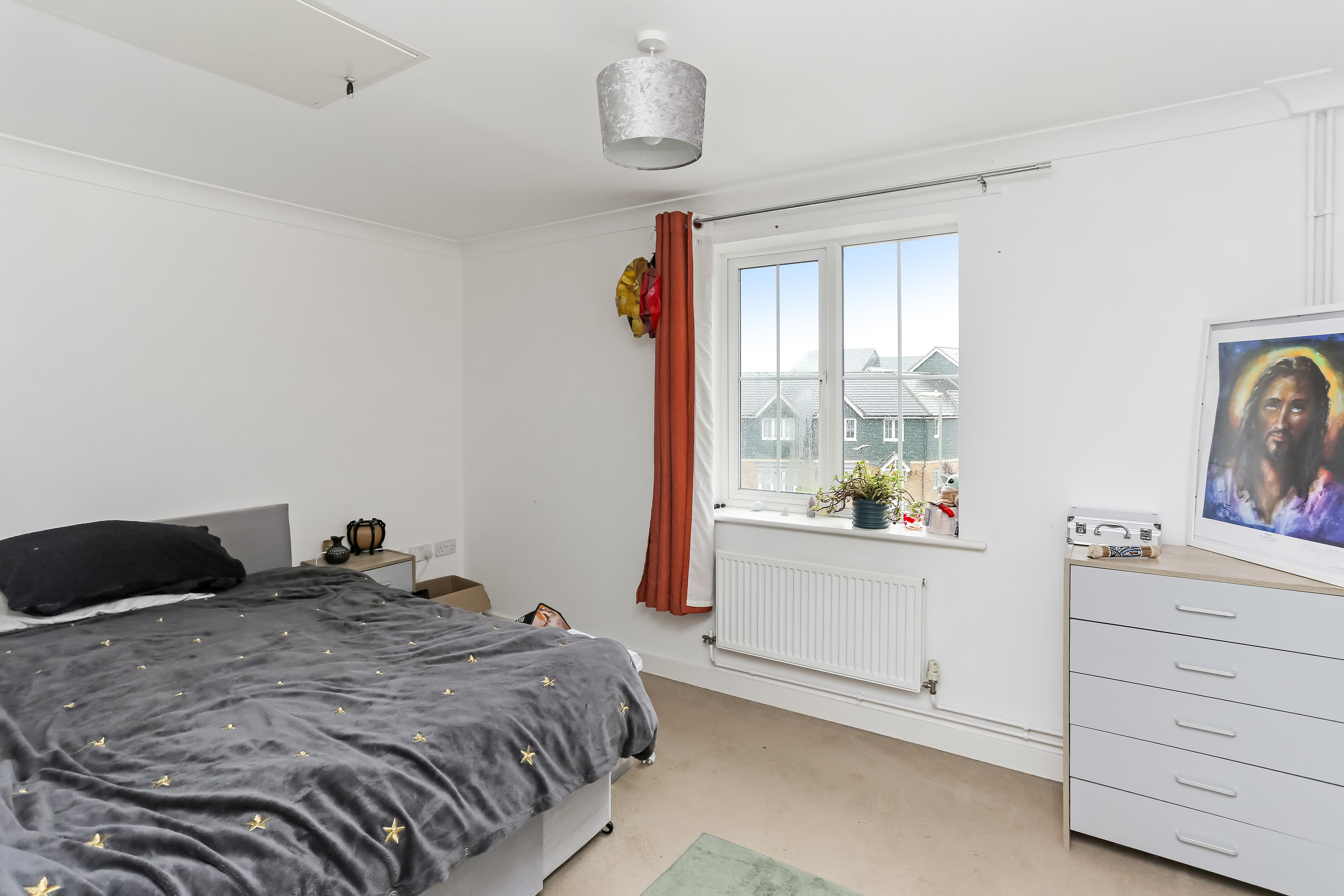 Inside, the apartment features two generous double bedrooms, both well-proportioned and ideal for comfortable living, guest accommodation or creating a practical work-from-home space. The heart of the home is the bright and sociable open-plan kitchen and living area, perfectly designed for modern lifestyles — whether entertaining friends, enjoying quiet evenings in, or maximising everyday living space.