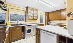 The ground floor layout provides entrance hall with stairs to the first floor, cloakroom, 'L' shaped living room at the front with electric fireplace and double doors into the dining room. The kitchen/breakfast room is fitted with a range of units, including a breakfast bar and comes equipped with an eye-level double oven, four ring electric hob, dishwasher, washer/dryer and an under counter freezer with a further door into the rear garden.