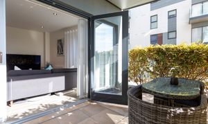 Situated on the ground floor, the apartment benefits from a south-facing patio garden, creating a bright and inviting extension of the living space—perfect for relaxing or entertaining.