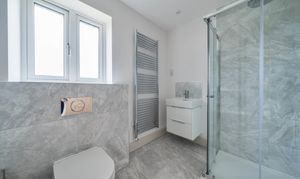 Upstairs the naturally lit landing opens into the main Bedroom suite, featuring a state-of-the-art Ensuite in fabulous white and dove grey, triple fitted wardrobes and a calm zen feeling for a restful night’s sleep. All the fixtures and fittings are finished to a high standard and offer a luxury feel.