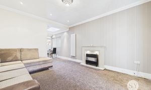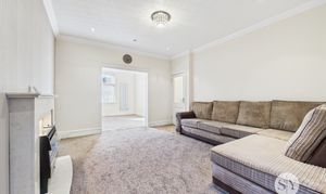 Carpet flooring, ceiling coving, ceiling spot lights, gas fire with marble hearth and surround, double glazed uPVC window, column radiator.