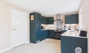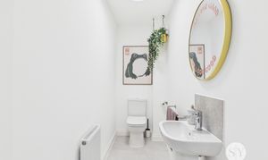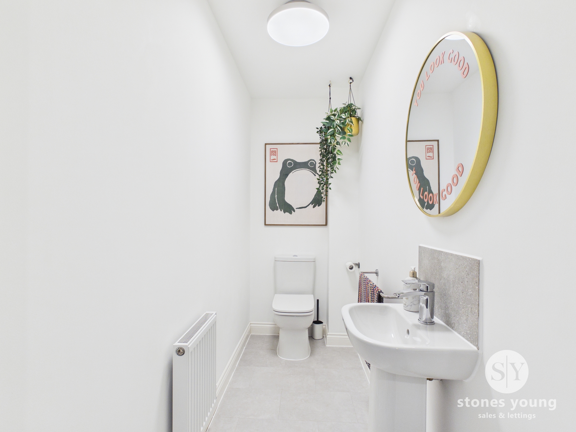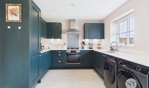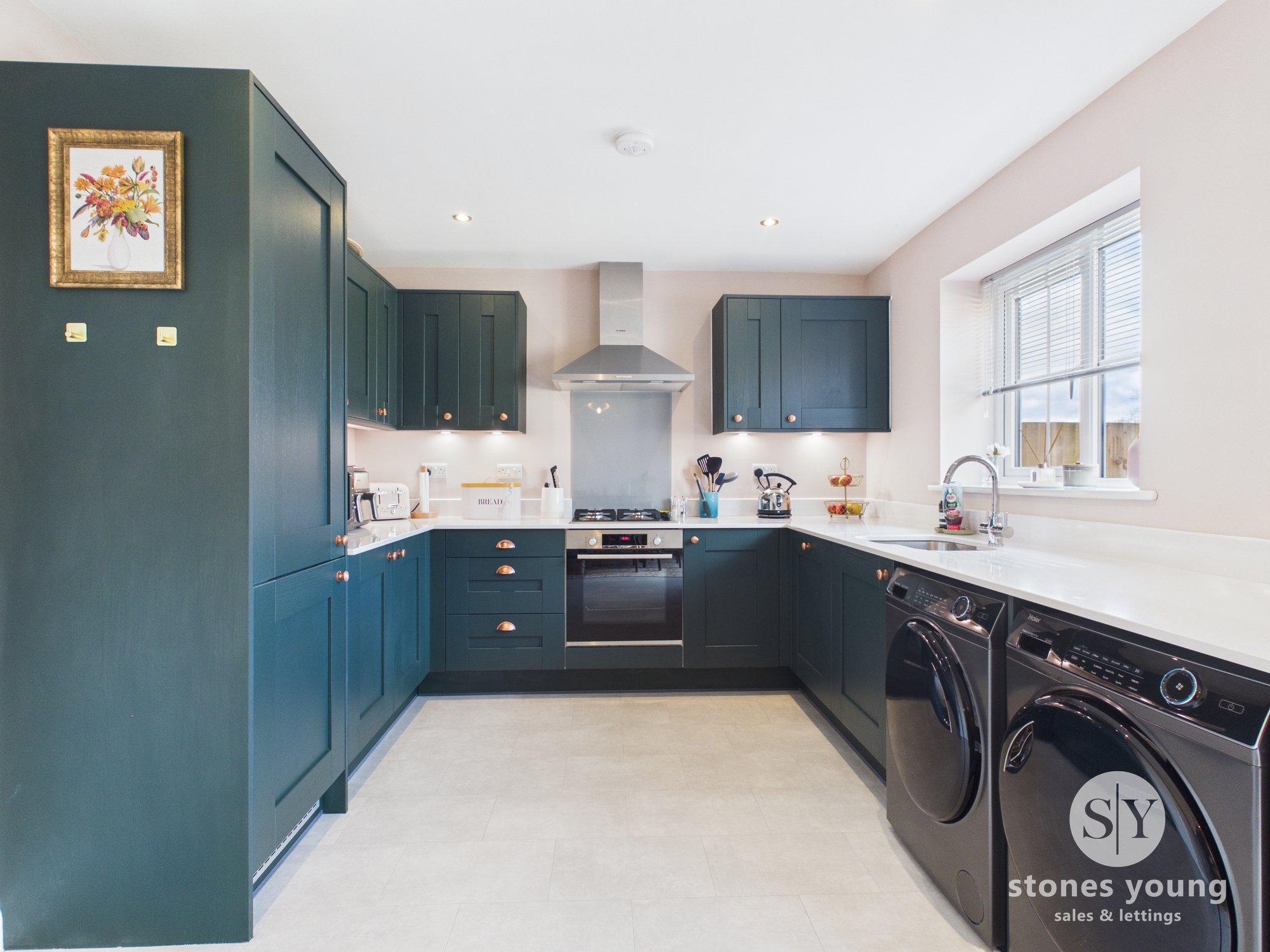 Beautifully decorated throughout, the property has been thoughtfully designed with both practicality and contemporary living in mind. The welcoming entrance leads to a bright and spacious layout, including a convenient ground floor WC and internal access into the garage, providing secure parking and additional storage. The true heart of the home is the impressive kitchen diner, finished to an exceptional standard with sleek cabinetry and elegant quartz work surfaces. This superb space offers ample room for dining and entertaining, creating a perfect setting for both everyday family life and hosting guests.