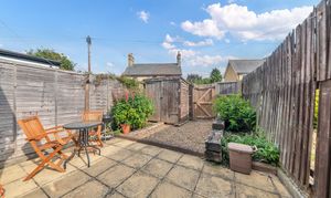 Outside, to the rear, the garden is a good size, fully enclosed by fencing and offering a lovely low-maintenance spot to sit and relax after a busy day. It is laid to paved patio and gravel areas, providing space for garden furniture, cooking meals al fresco and entertaining guests. There are pretty borders of shrubs, space for potted plants, gated access to the rear of the property, access to a shed, and plenty of scope for future owners to put their own stamp on things.