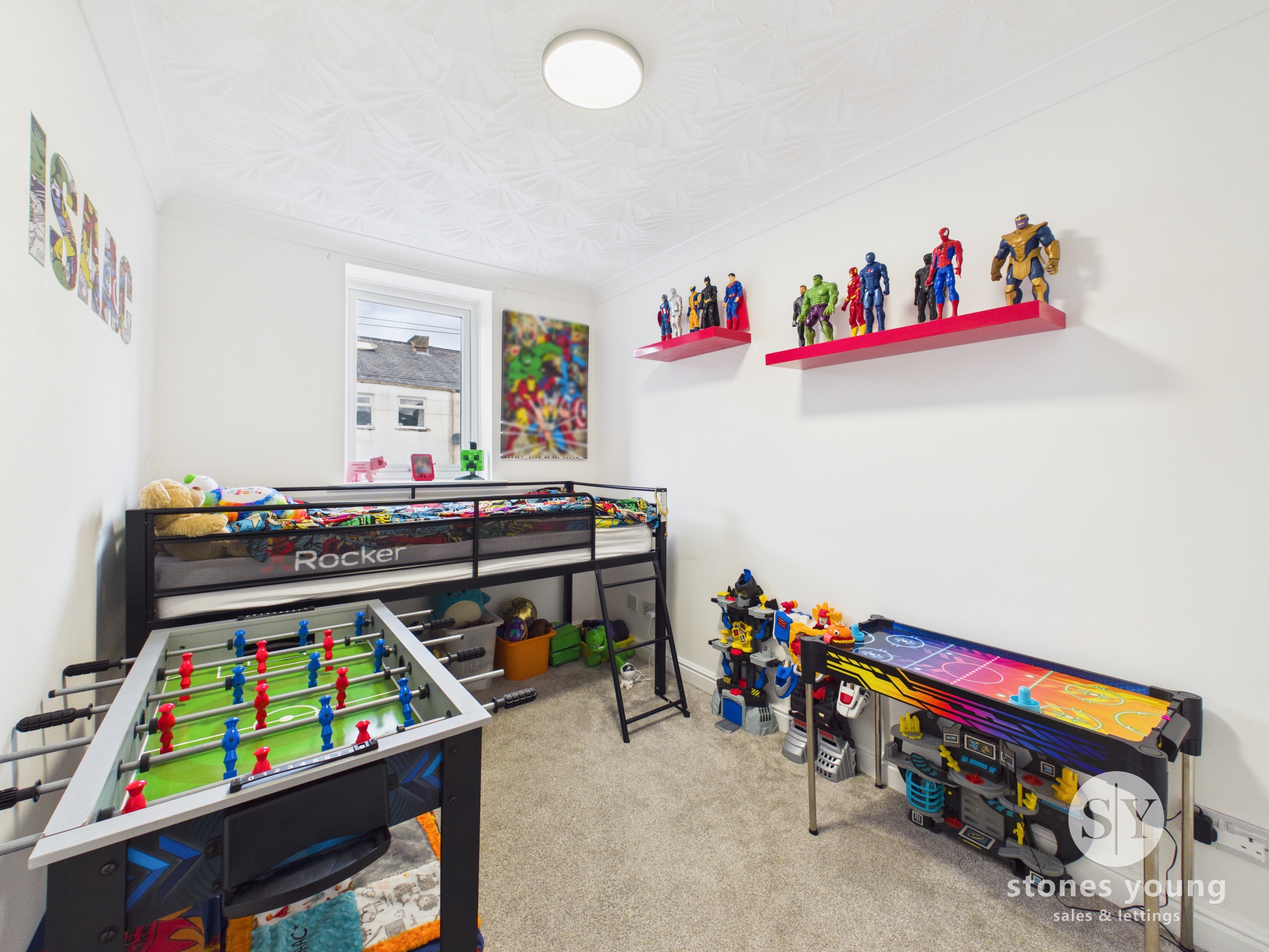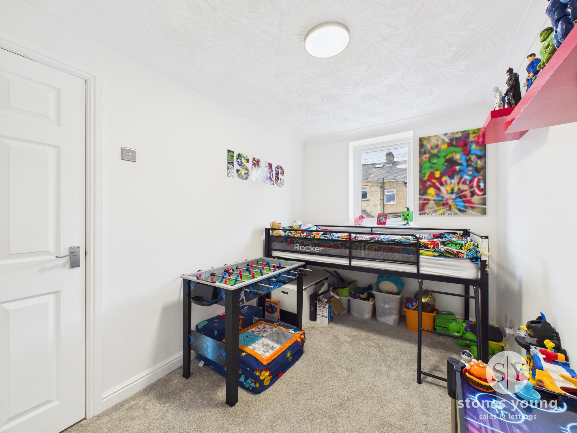 Carpet flooring, eaves storage, panel radiator, uPVC double glazed Velux window.