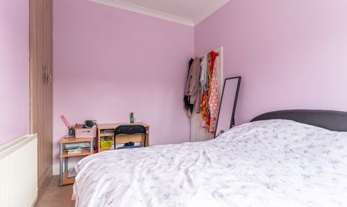 At the rear of the property, you'll find the large galley kitchen, which provides ample cupboard space and worktop surfaces, ideal for preparing family meals. From here, there is access to the rear garden and a ground-floor shower room, making it a practical space for busy family life.