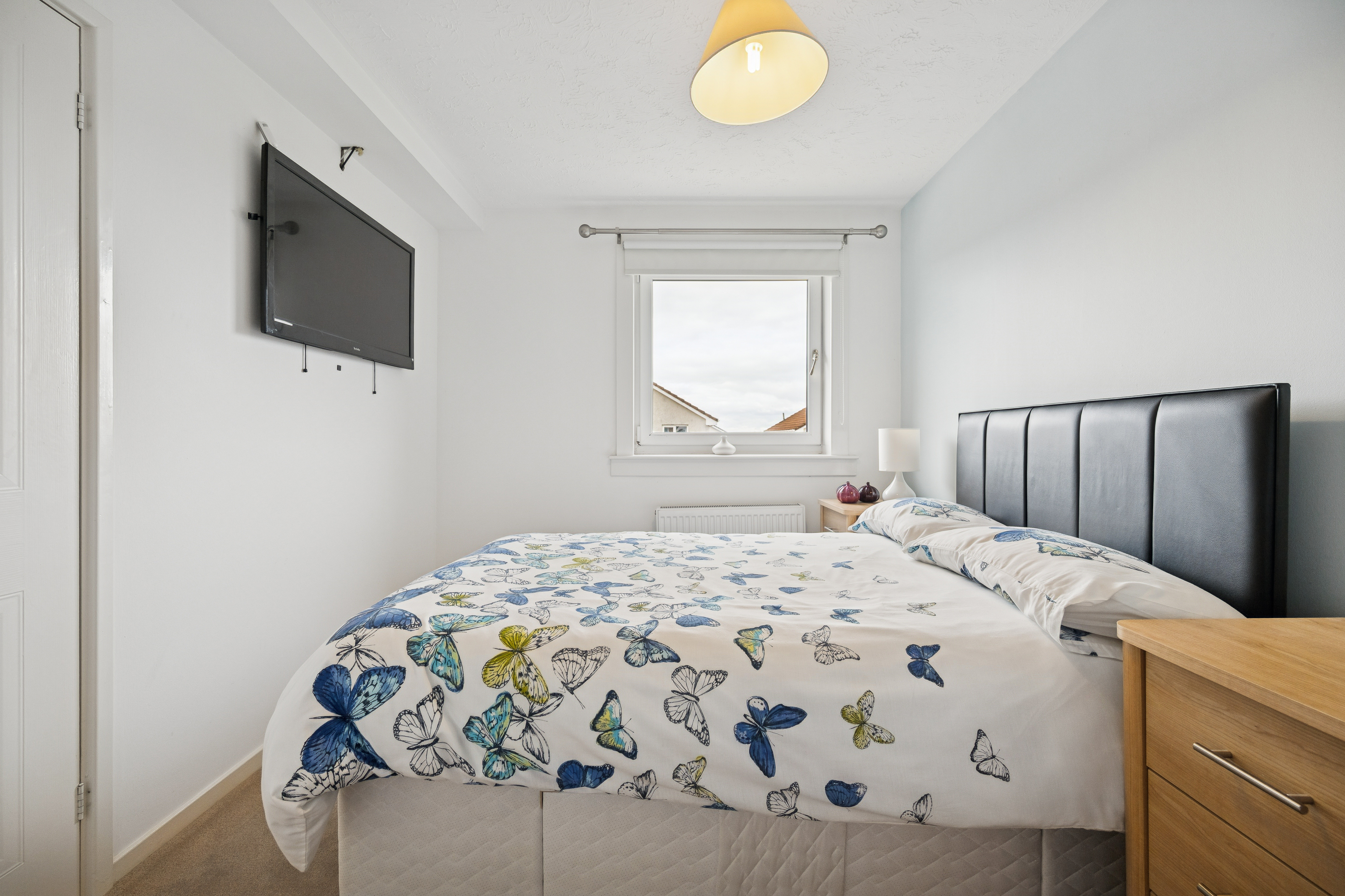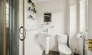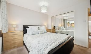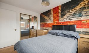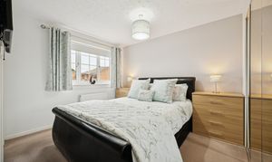 Upstairs, the principal bedroom comfortably accommodates a king-size bed, with fitted wardrobes providing excellent storage. The en-suite shower room is fully tiled and finished to a high standard. Bedroom two is another spacious double with its own fitted wardrobes, while bedroom three also accommodates a double bed with fitted storage. Bedroom four is a versatile room, suitable for a single or double bed, making it ideal for children, guests, or as a home office. The family bathroom is modern and stylish, with full tiling, a chrome towel rail, and a three-piece suite including a bathtub with overhead power shower.