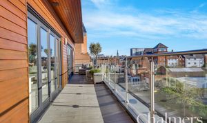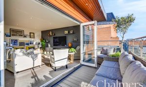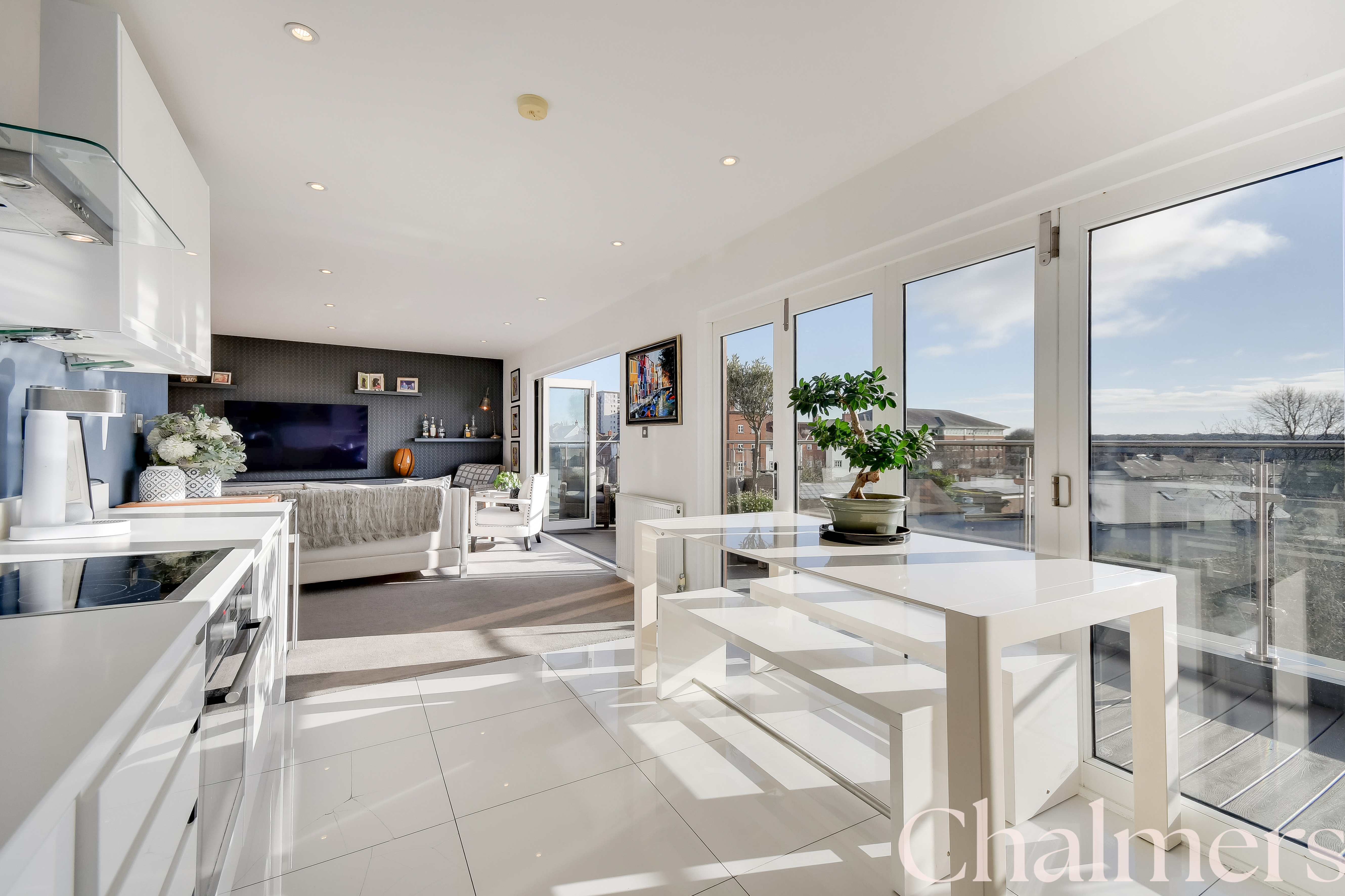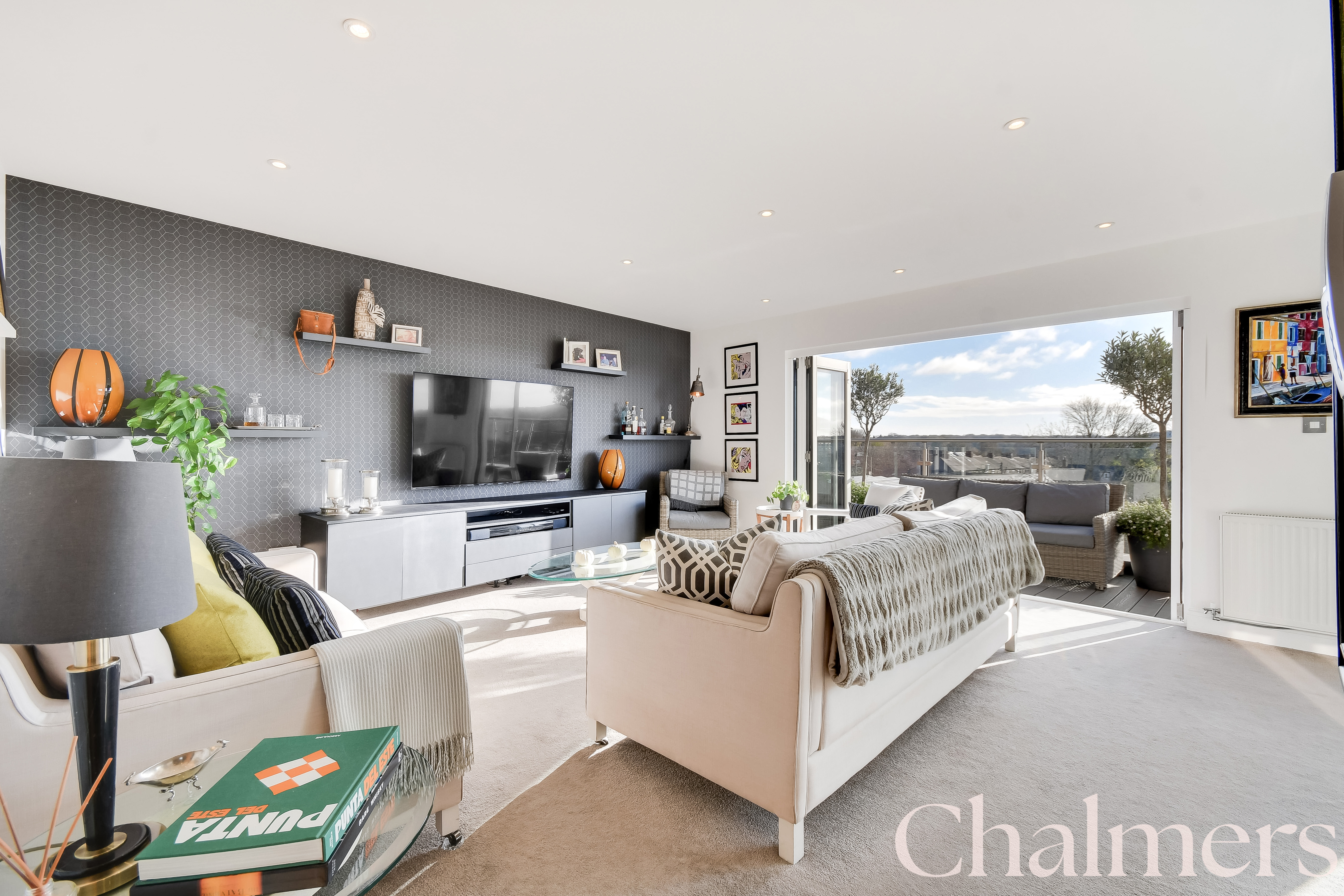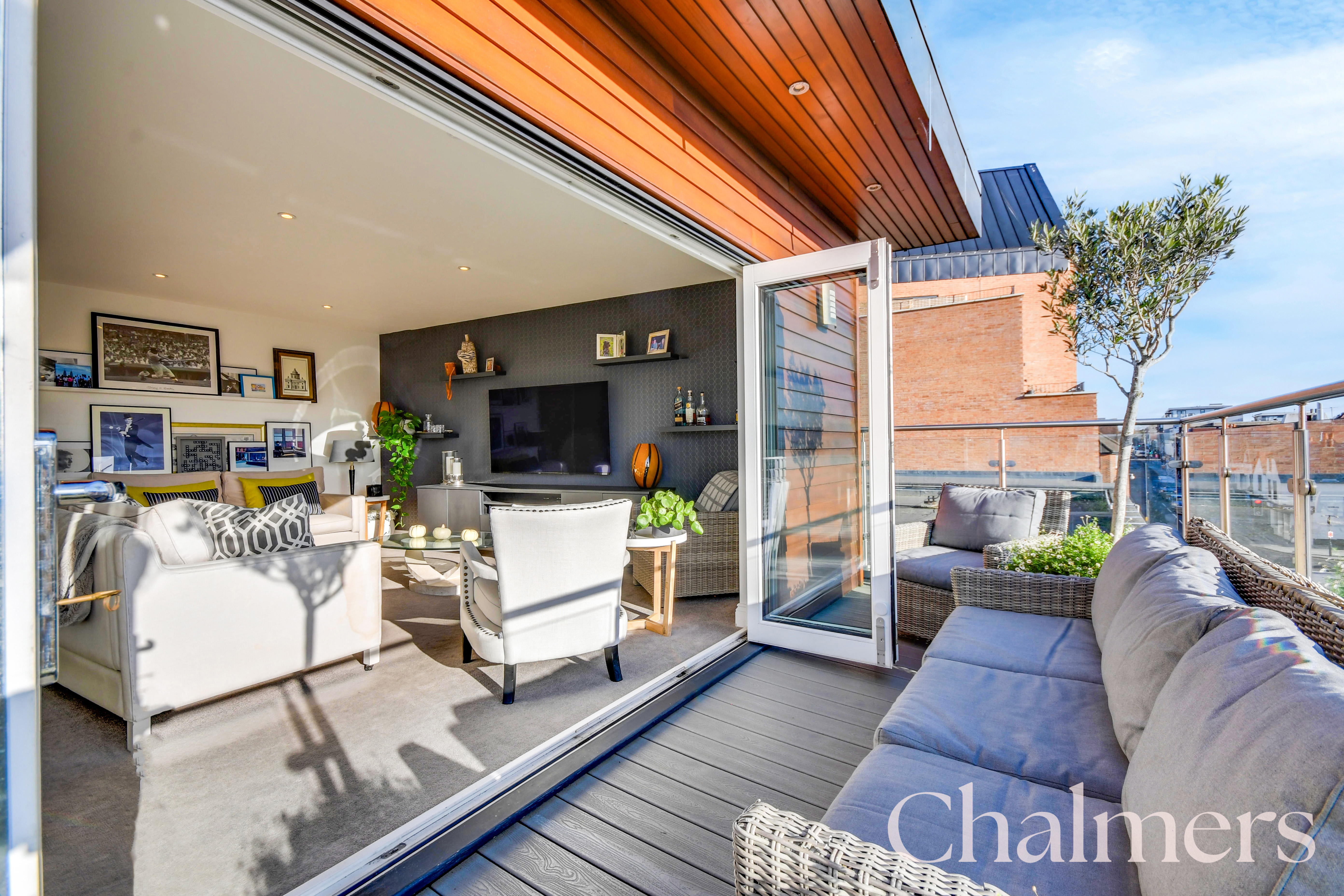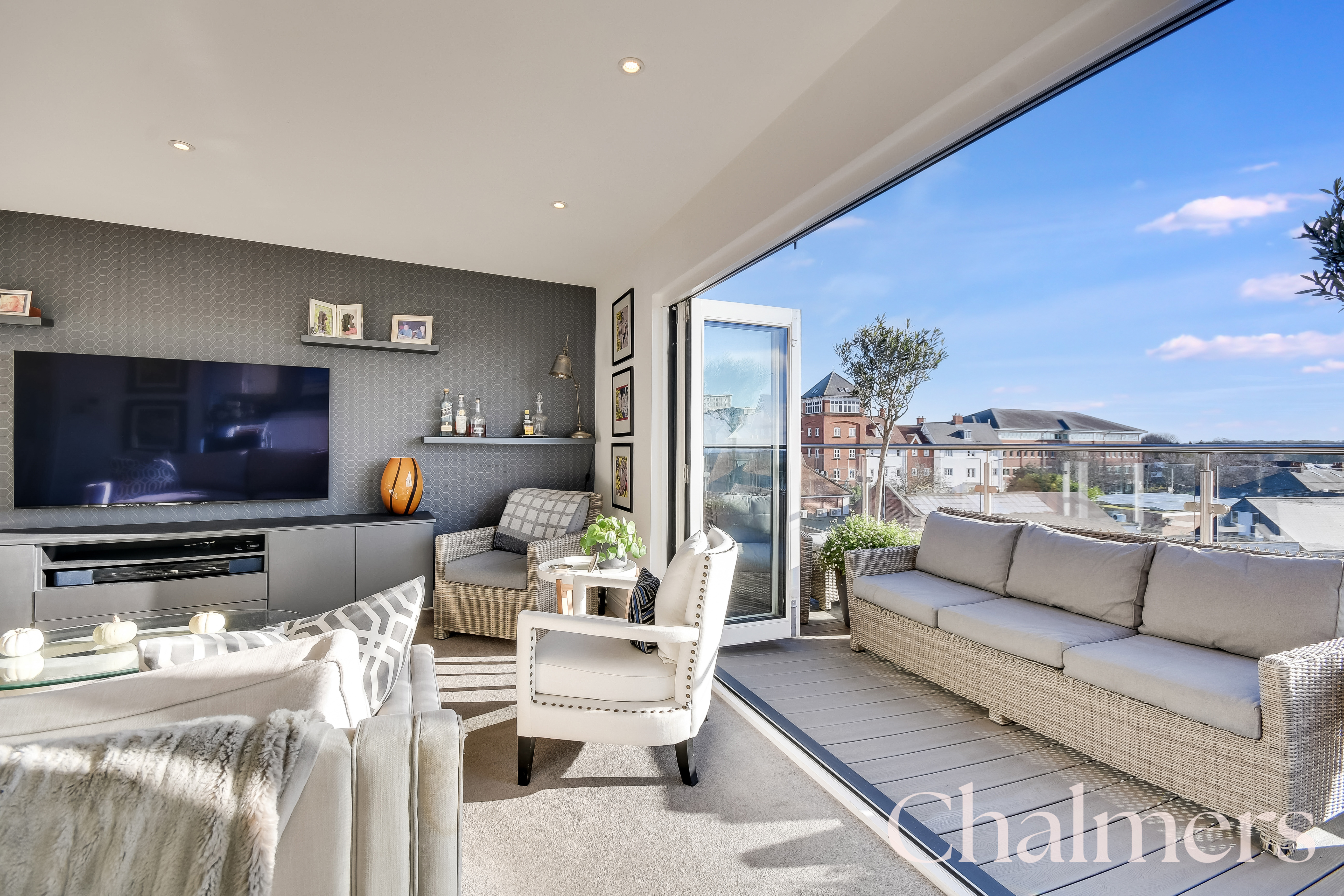 Stunning space with bi-folding doors opening onto huge balcony - it's easy to imagine sitting watching the skies change.