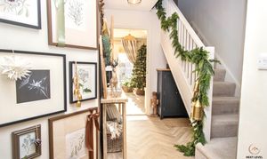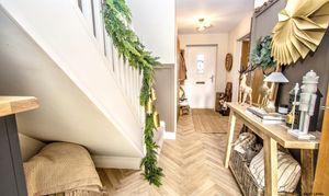 A beautifully styled entrance hall creates an immediate impression, finished with contemporary herringbone LVT underfoot and rich oak doors adding warmth and texture. Sleek understairs storage ensures effortless organisation, and the staircase draws the eye upward, inviting you to explore the first floor and the flow of living spaces beyond.