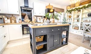- Stylish open-plan kitchen/diner with a central island, granite prep surface, basket and drawer storage, solid wood worktops, tiled finishes and integrated appliances — ideal for cooking, entertaining