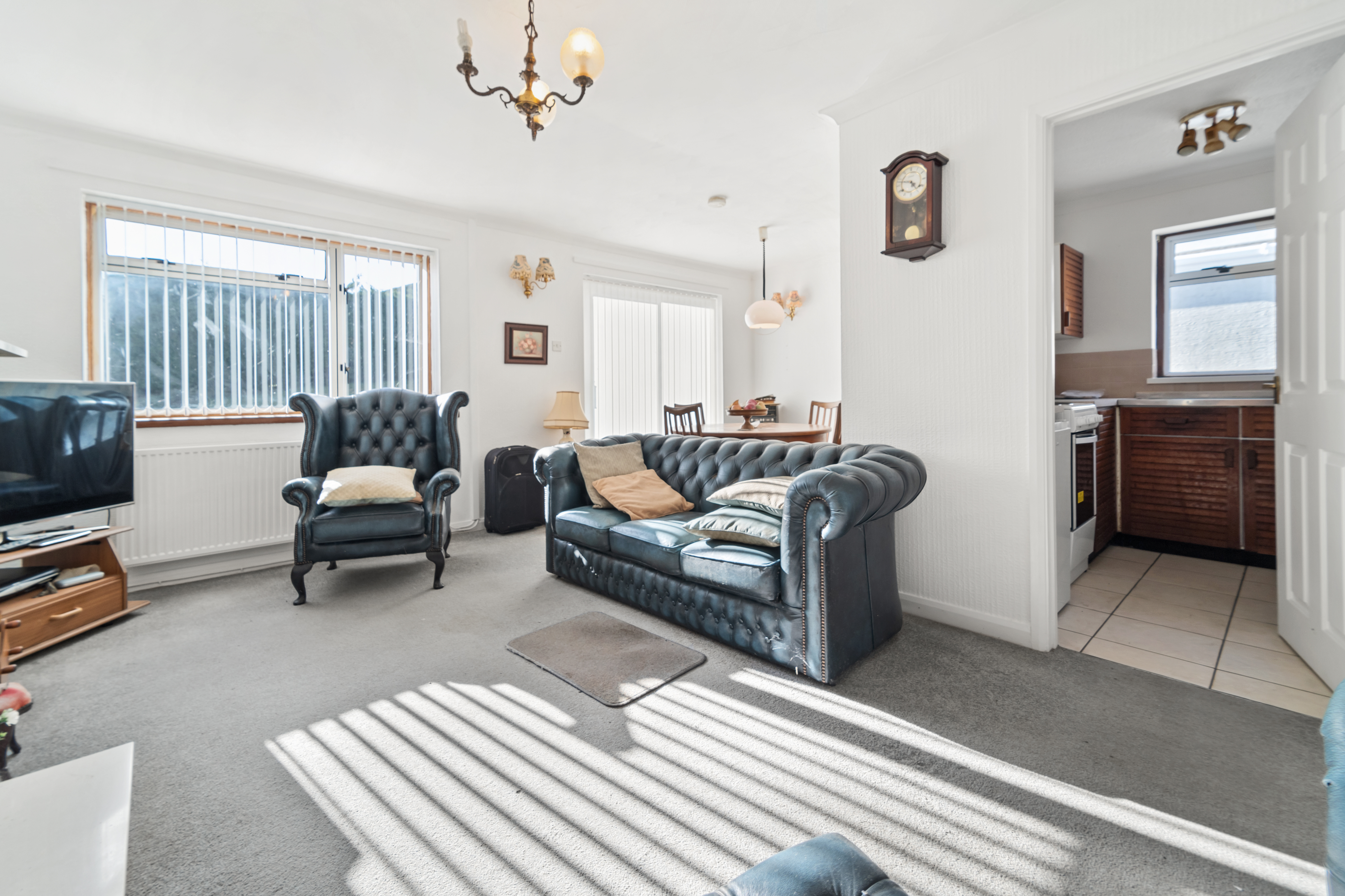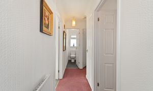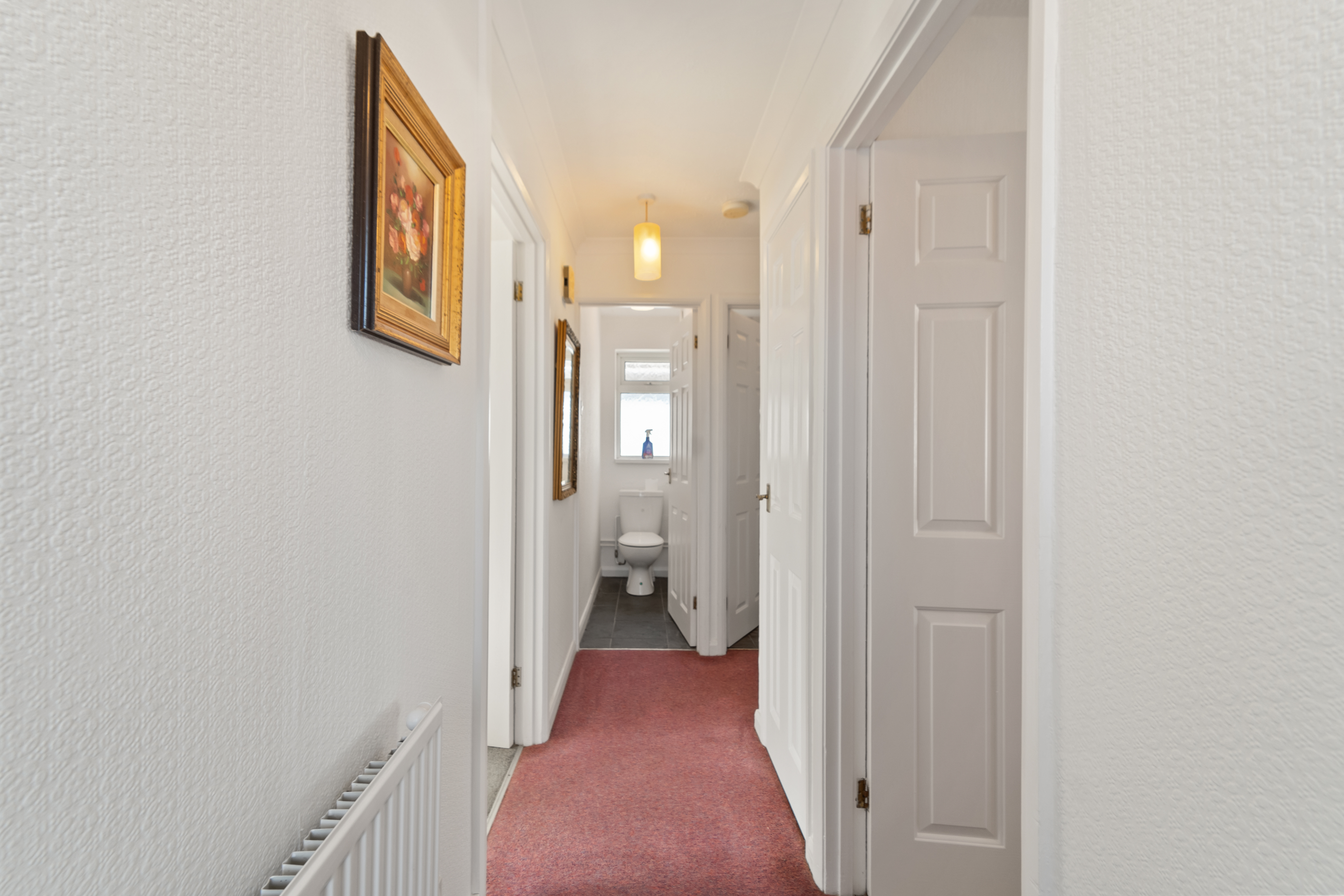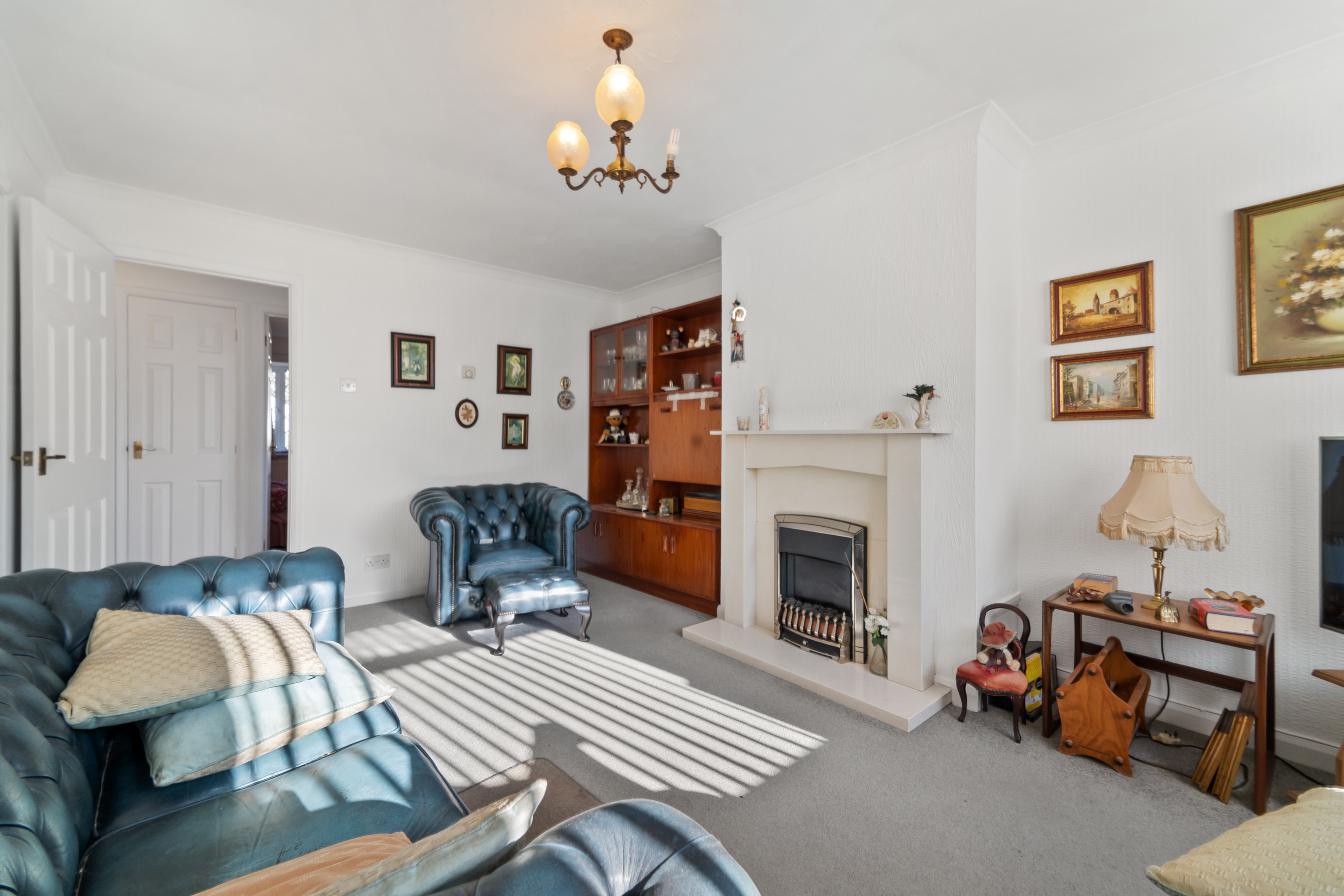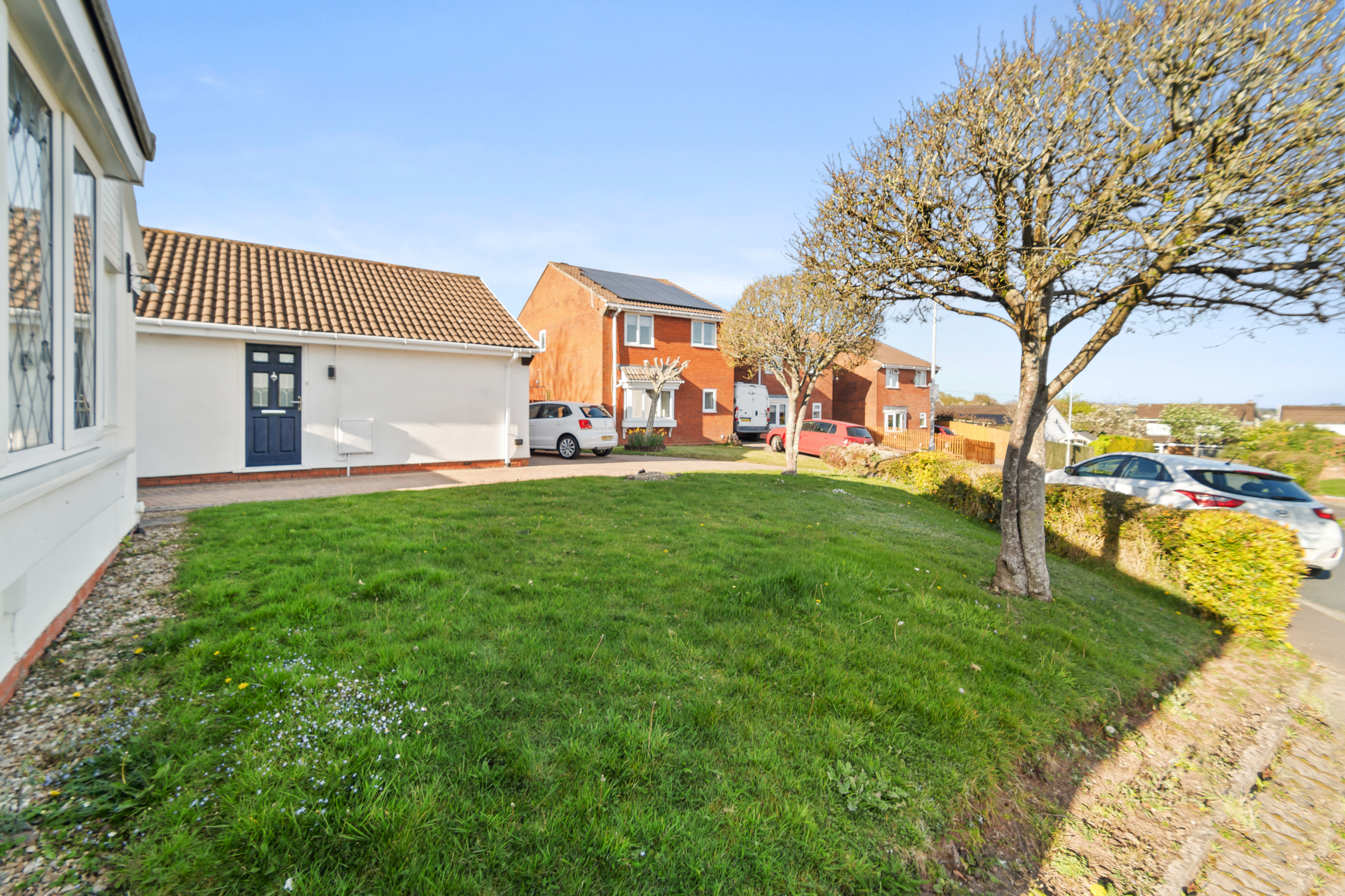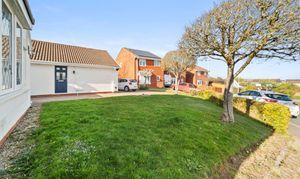 Stepping outside we have the fully enclosed rear garden, which comprises of a well sized patio space and two lawn spaces, adorned with a beautiful array of shrubs and flowers, creating a wonderfully relaxing environment that is perfect for relaxing and entertaining guests. From the garden we can also find a doorway into the garage, in addition to the main door at the front of the property - offering a useful storage space or sheltered car parking. Further parking space for up to two vehicles can be found on the driveway, which runs parallel to another spacious lawn to welcome us on approach to the house.