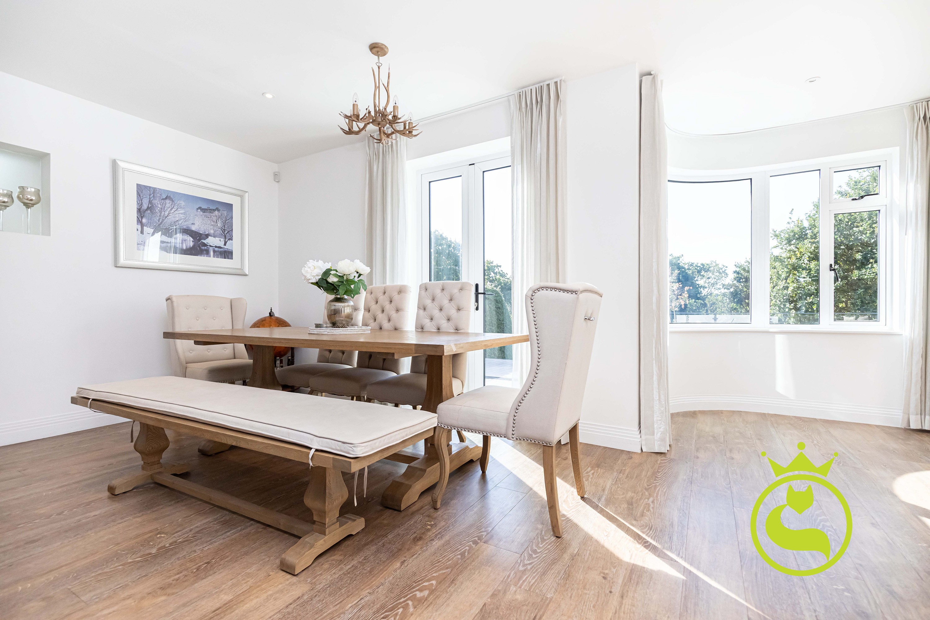 We are thrilled to present this exceptional five-bedroom detached residence, offering an impressive 2,844 sq ft of accommodation in a highly sought-after location. Designed with timeless Art Deco influences, this elegant home spans three floors and features a calming neutral interior, creating a sophisticated yet inviting atmosphere throughout.