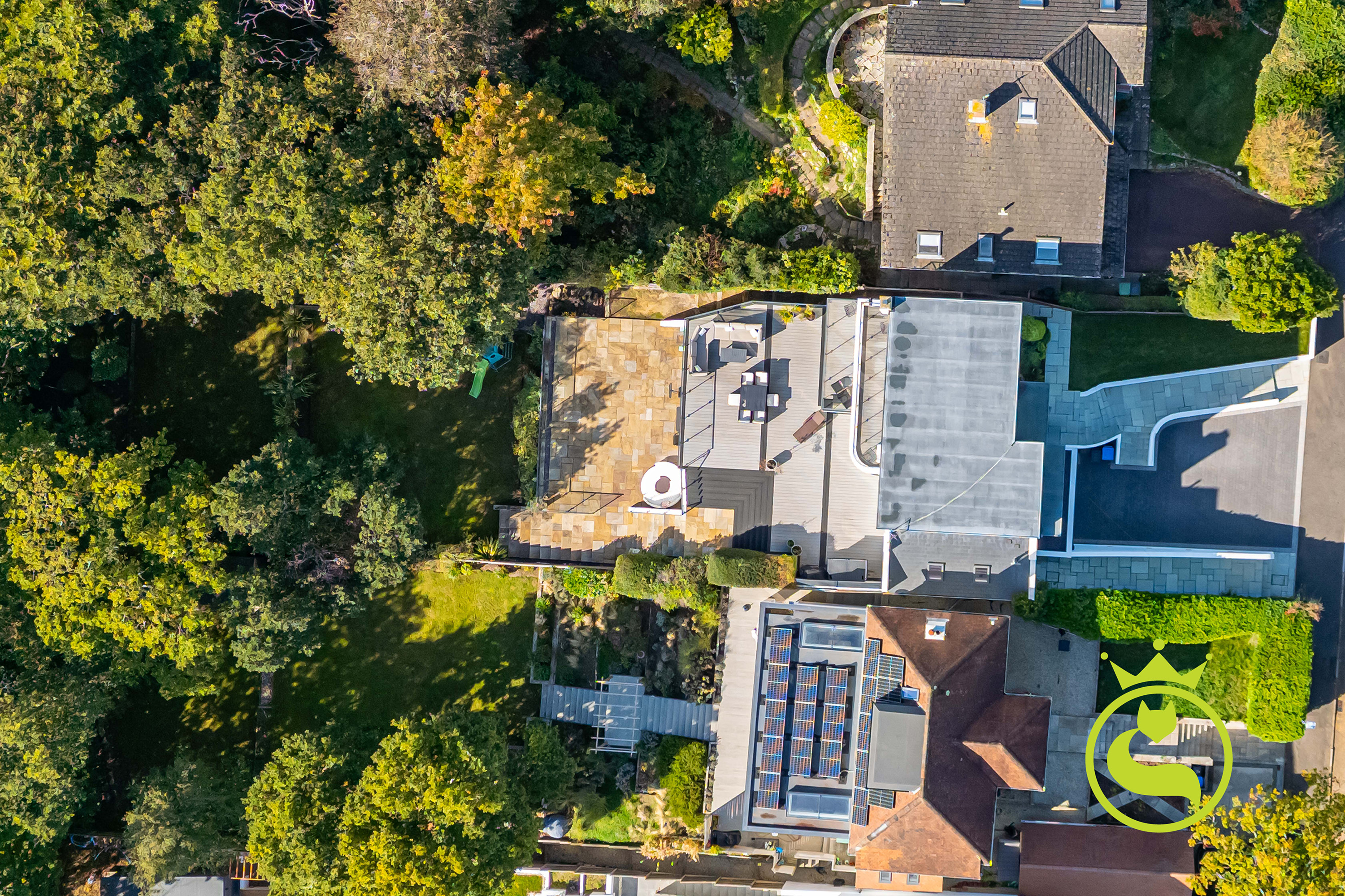 "When we first walked in, we instantly fell in love with the sense of space and natural light. The open-plan living area flows out onto the huge sun terrace, giving the house an amazing holiday feel - like living in a treehouse, surrounded by greenery, enjoying all-day sun and a beautiful garden that changes with every season. In winter, the log burner becomes the heart of the home, creating a warm and inviting atmosphere. The street is peaceful and bright, set within a quiet cul-de-sac with wonderful neighbours.