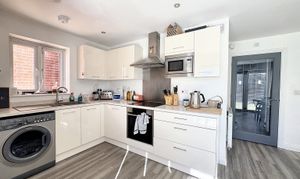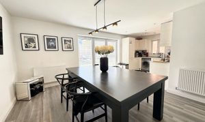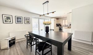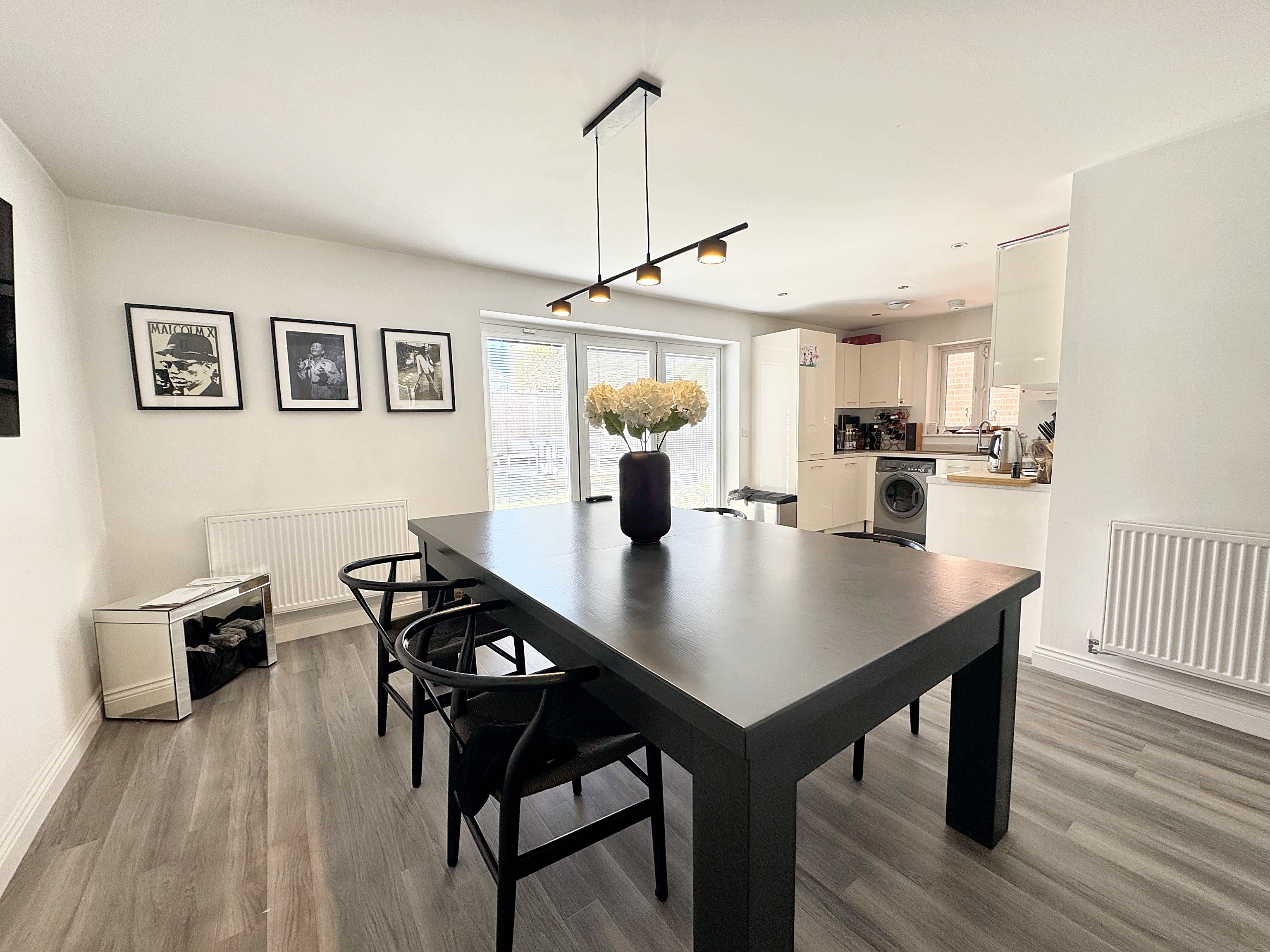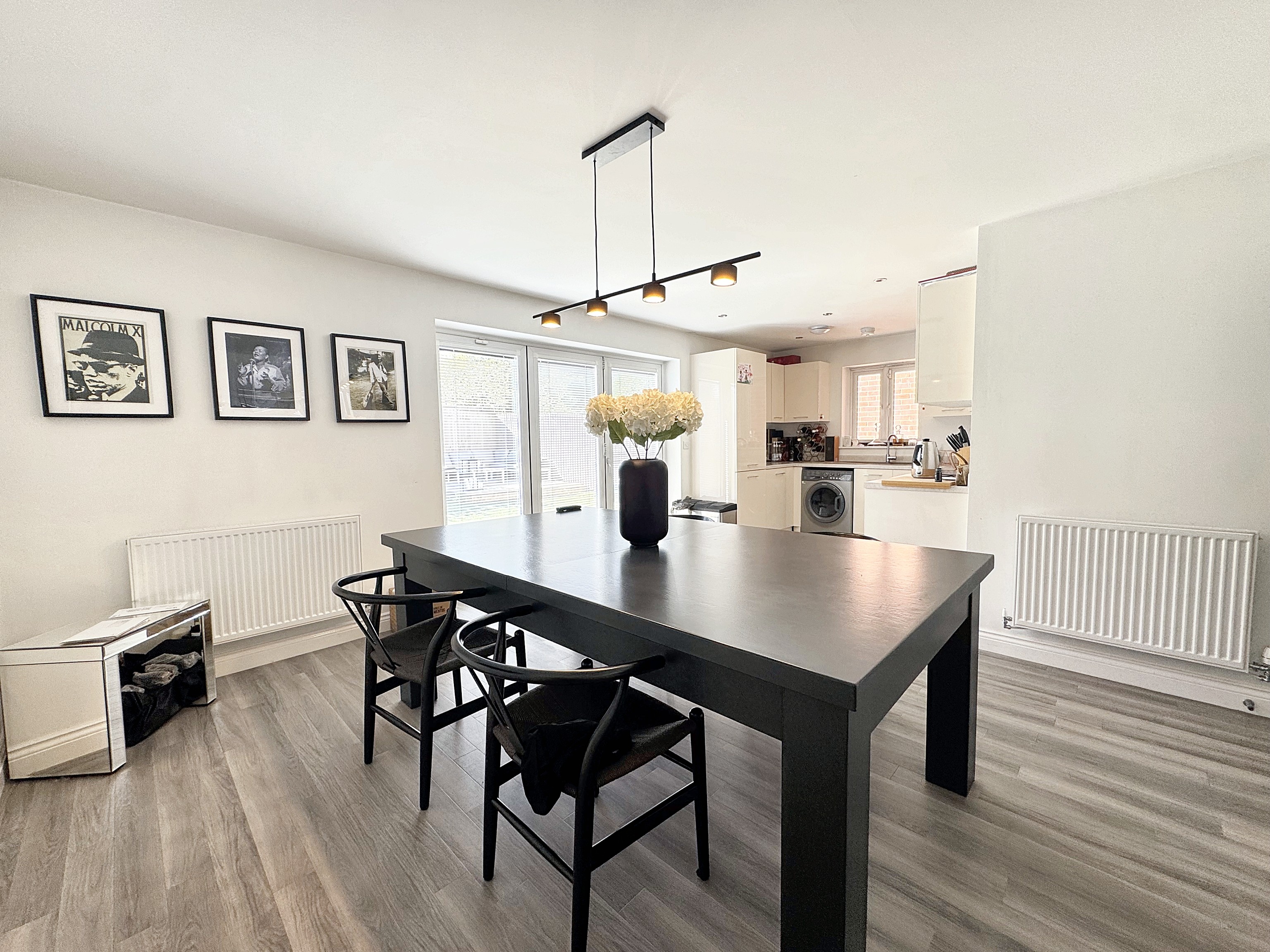 Bi-folding doors to the rear elevation. An open plan kitchen/diner area comprising of a modern fitted kitchen with a range of wall and base units offering a Neff oven, hob & extractor fan and an integrated fridge/freezer and dishwasher. There is also space for a washing machine. A further under stair storage cupboard.