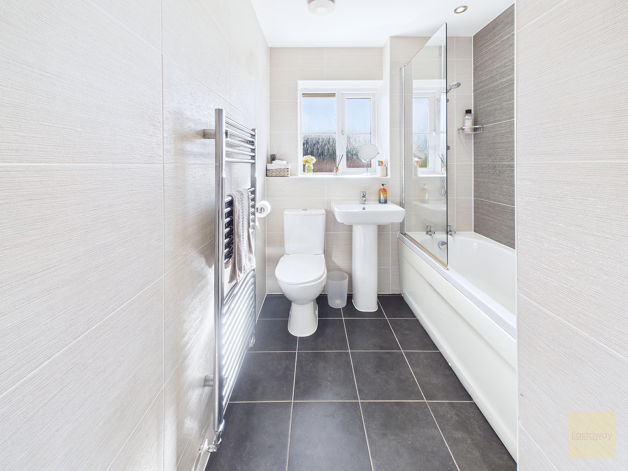 Upstairs, there are four genuine double bedrooms, which makes this home perfect whether you’re upsizing, downsizing, or planning for the future. The principal bedroom comes with built-in wardrobes and its own en-suite, while bedroom two is so spacious it feels like another master, also complete with an en-suite. Bedrooms three and four are both spacious doubles too, making them ideal for children, guests, or even a home office. The family bathroom has been upgraded with modern tiling, a shower-over-bath, and a heated towel rail. Storage hasn’t been overlooked either and the huge airing cupboard on the landing is a real bonus.