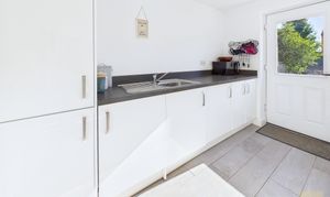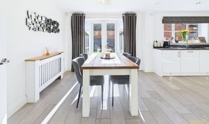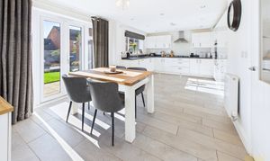 The kitchen diner is the real showpiece. Finished with sleek cabinetry and integrated appliances including oven, hob, fridge-freezer, dishwasher, and extractor, it’s as practical as it is stylish. There’s room for a full-size dining table, and with French doors opening directly into the garden, it’s easy to imagine hosting barbecues in summer or enjoying long Sunday lunches that flow between inside and out. The adjoining utility room gives you space to keep the noisy appliances tucked away, and a ground floor WC makes day-to-day life that bit simpler.