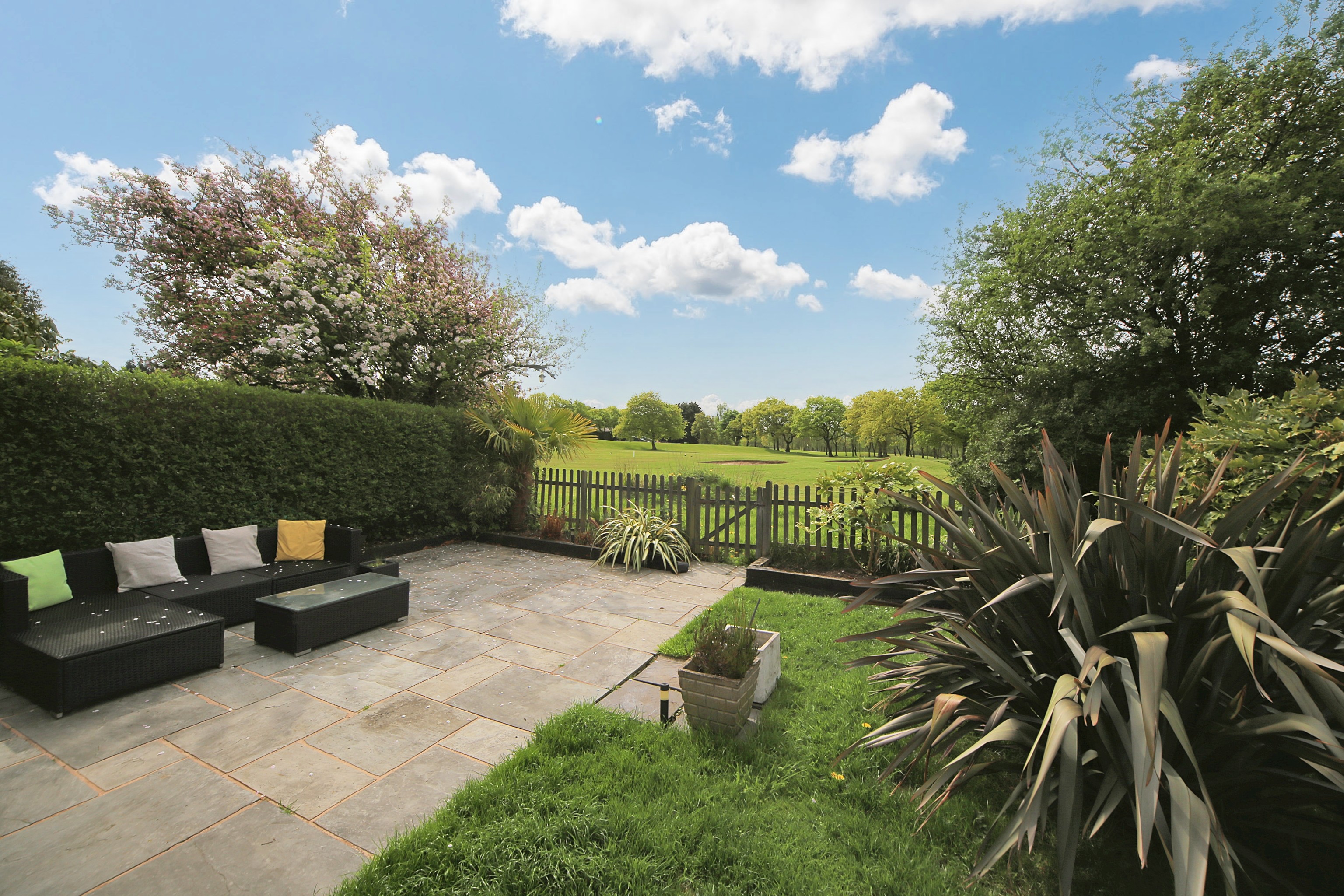 To the rear, the beautiful garden is laid to lawn and enjoys uninterrupted views of the adjoining golf course—a peaceful and picturesque setting with direct access to open green space.