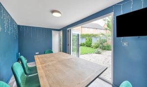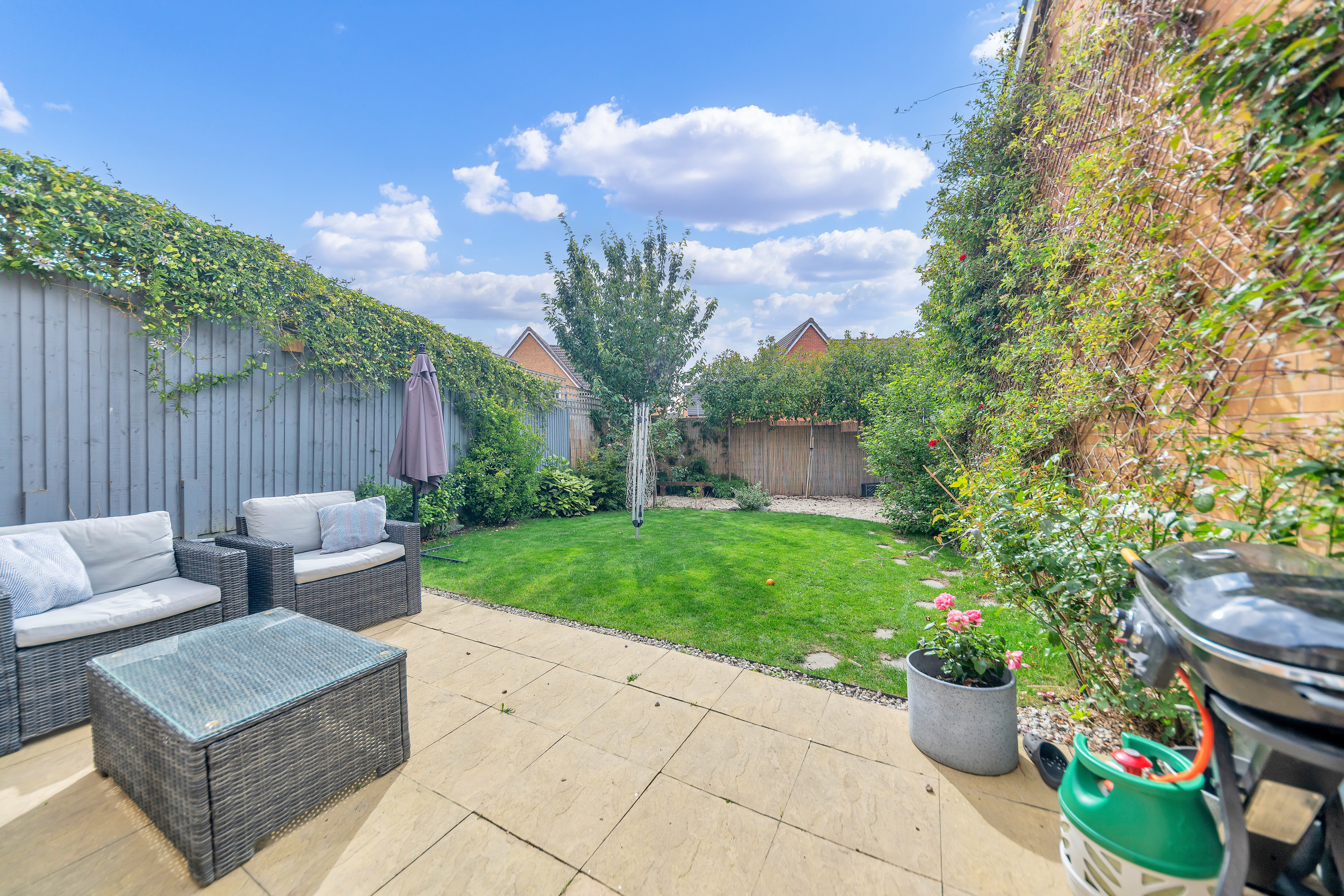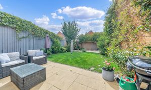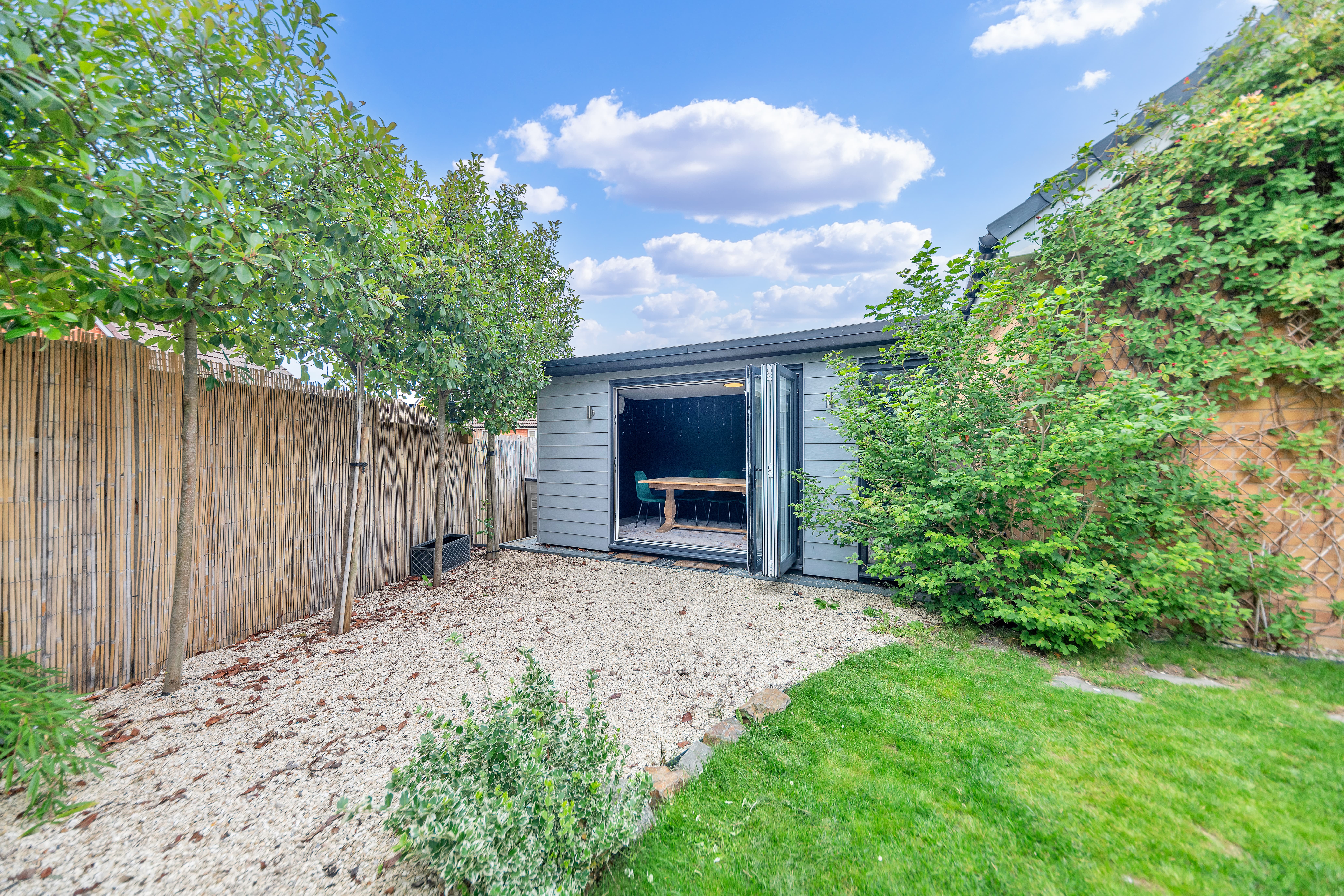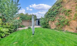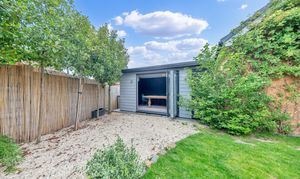 Outside, to the rear, the garden is a very good size and not overlooked, fully enclosed by fencing and offering a wonderful space to sit and relax in the sunshine. It is laid to lawn, with paved patio providing room for garden furniture, potted plants, cooking al fresco and entertaining guests. There are borders of plants and shrubs, access to a shed, and access to a large summer house which is fully air-conditioned and connected to Sky broadband and could be used as a home office or gym, depending on requirements.